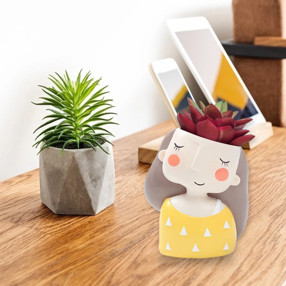 Hars Vetplanten Bloempot Bonsai Auto Ornament Meisje Bloempot Bonsai Ornamenten Menselijk Gezicht Vaas Decor Planten Opslag Container