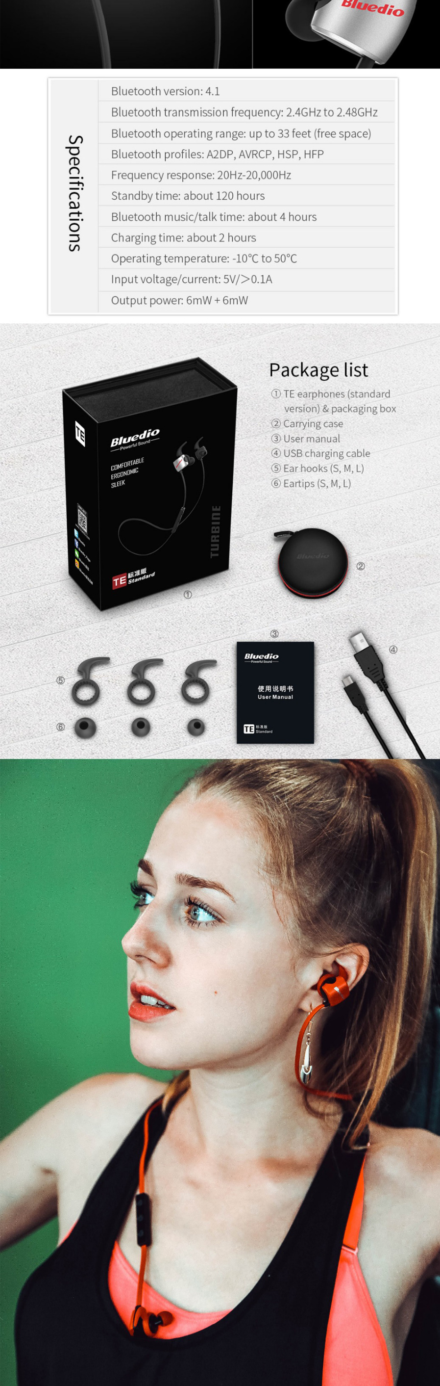 Bluedio TE Sports Bluetooth Headset/wireless Earbuds With Built-in Microphone Sweat Proof Earphone For Phones And Music Red