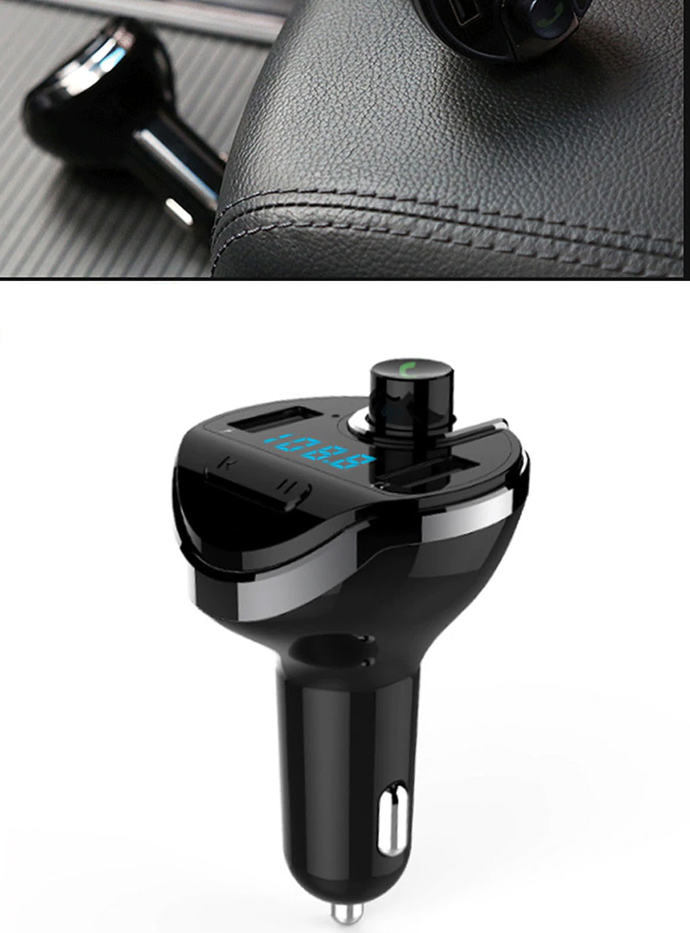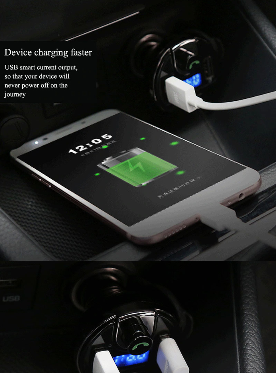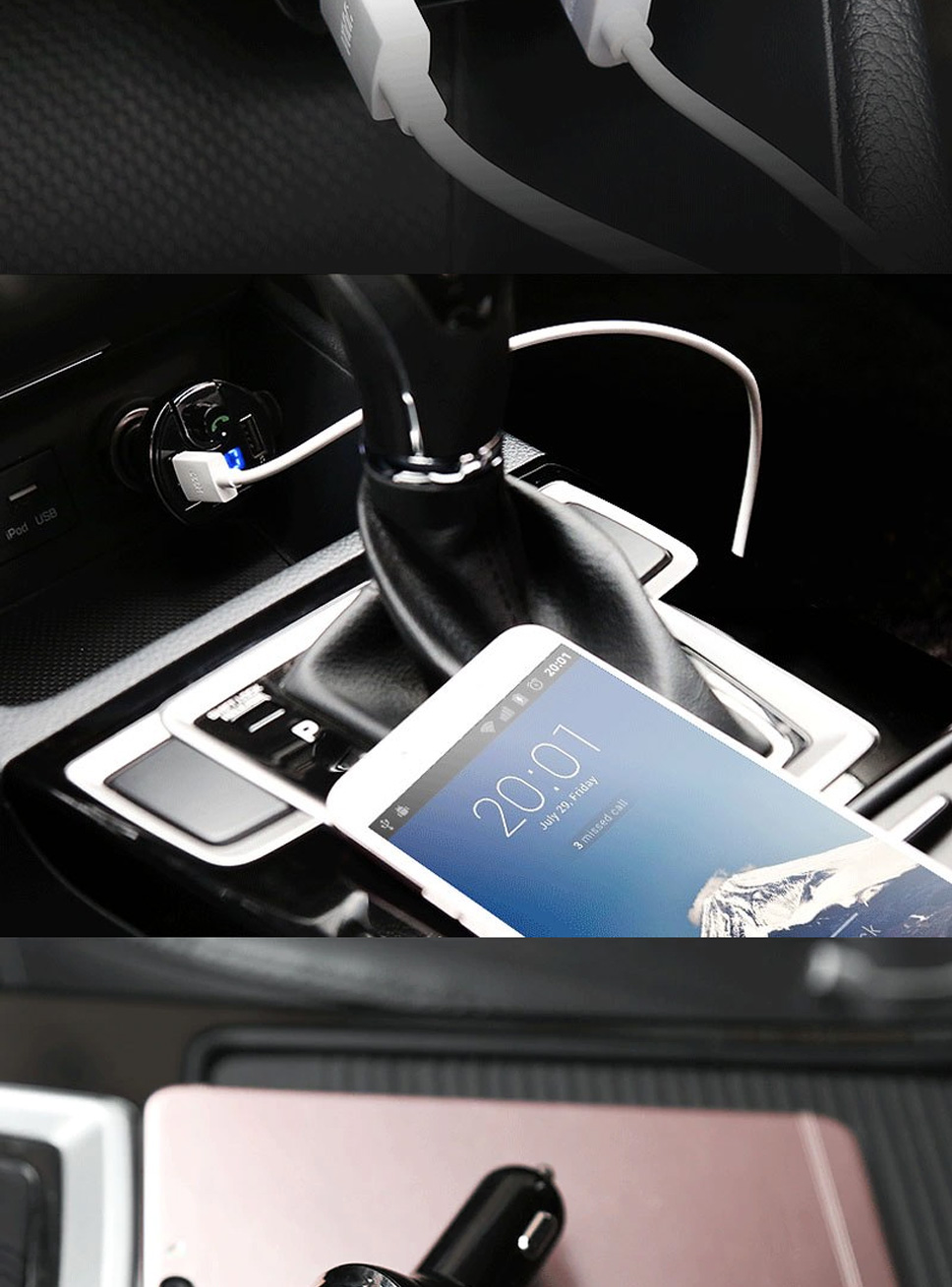 Integrated car charger of output 5V/3.4A, is available for charging handheld devices in car.
