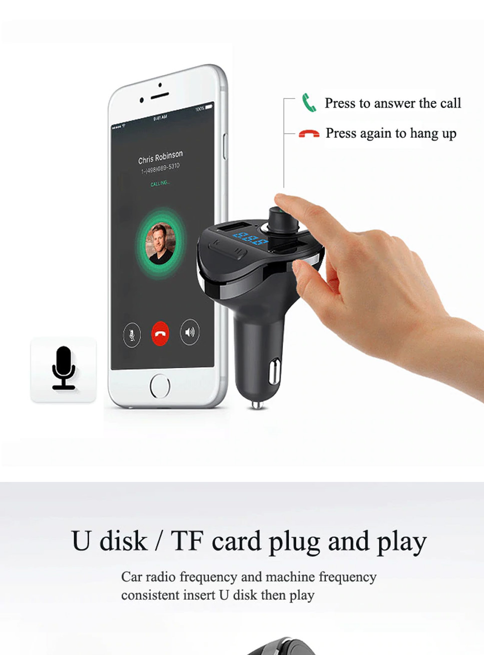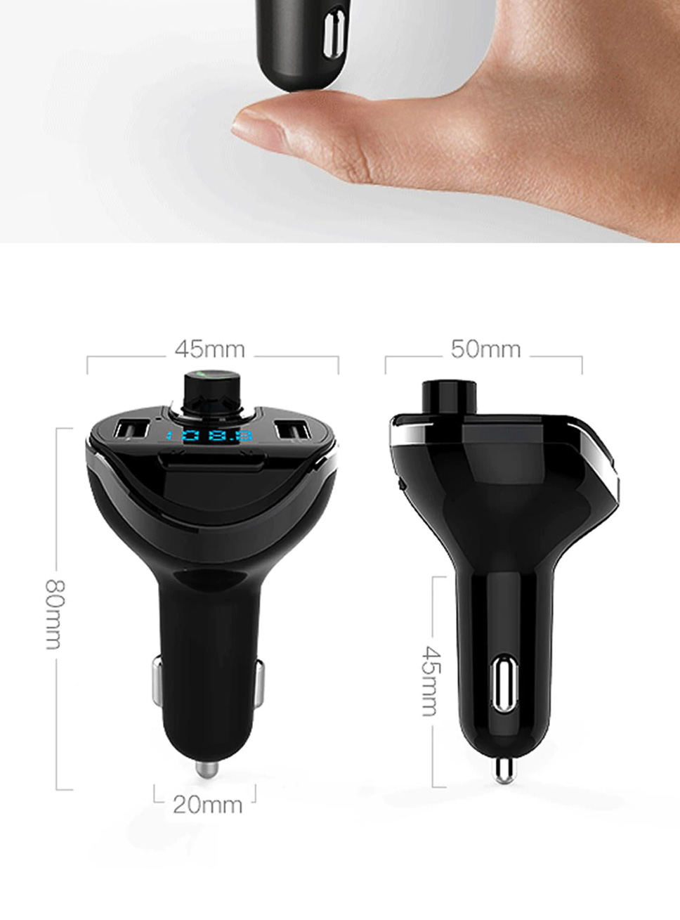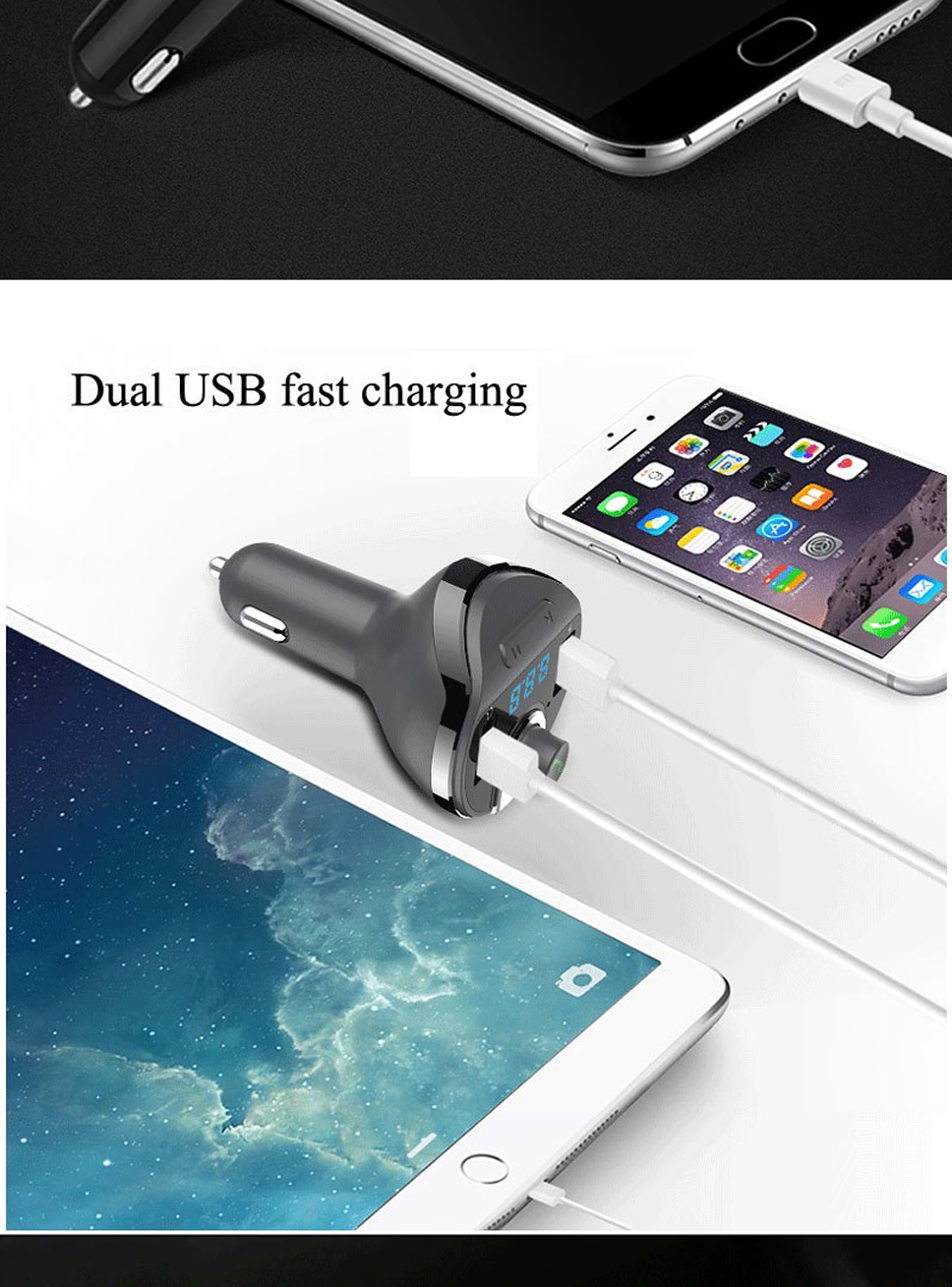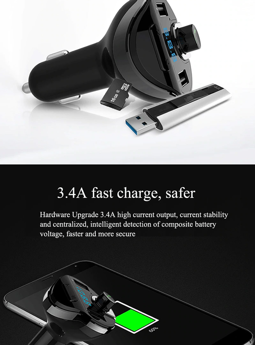 Bluetooth Car Kit Handsfree FM Transmitter Wireless MP3 Player Support TF Card / U Disk Dual USB 5V 3.4A Car Charge Black
