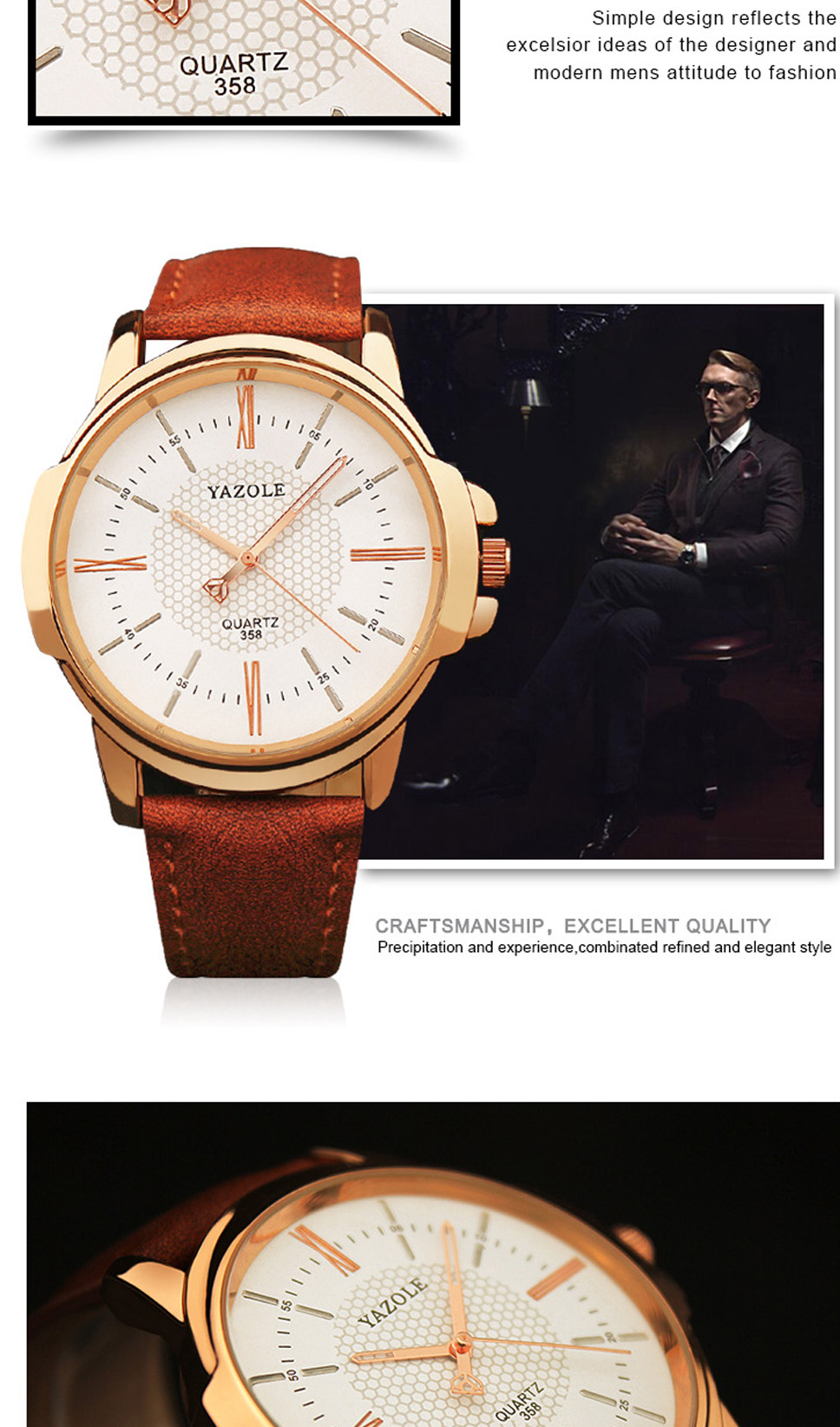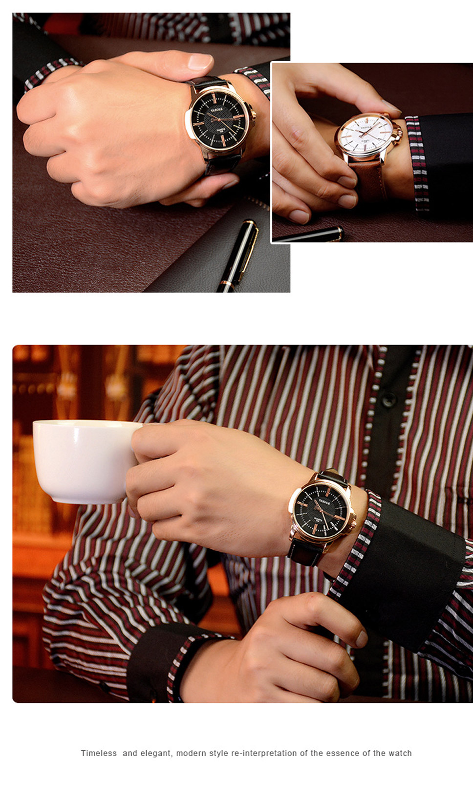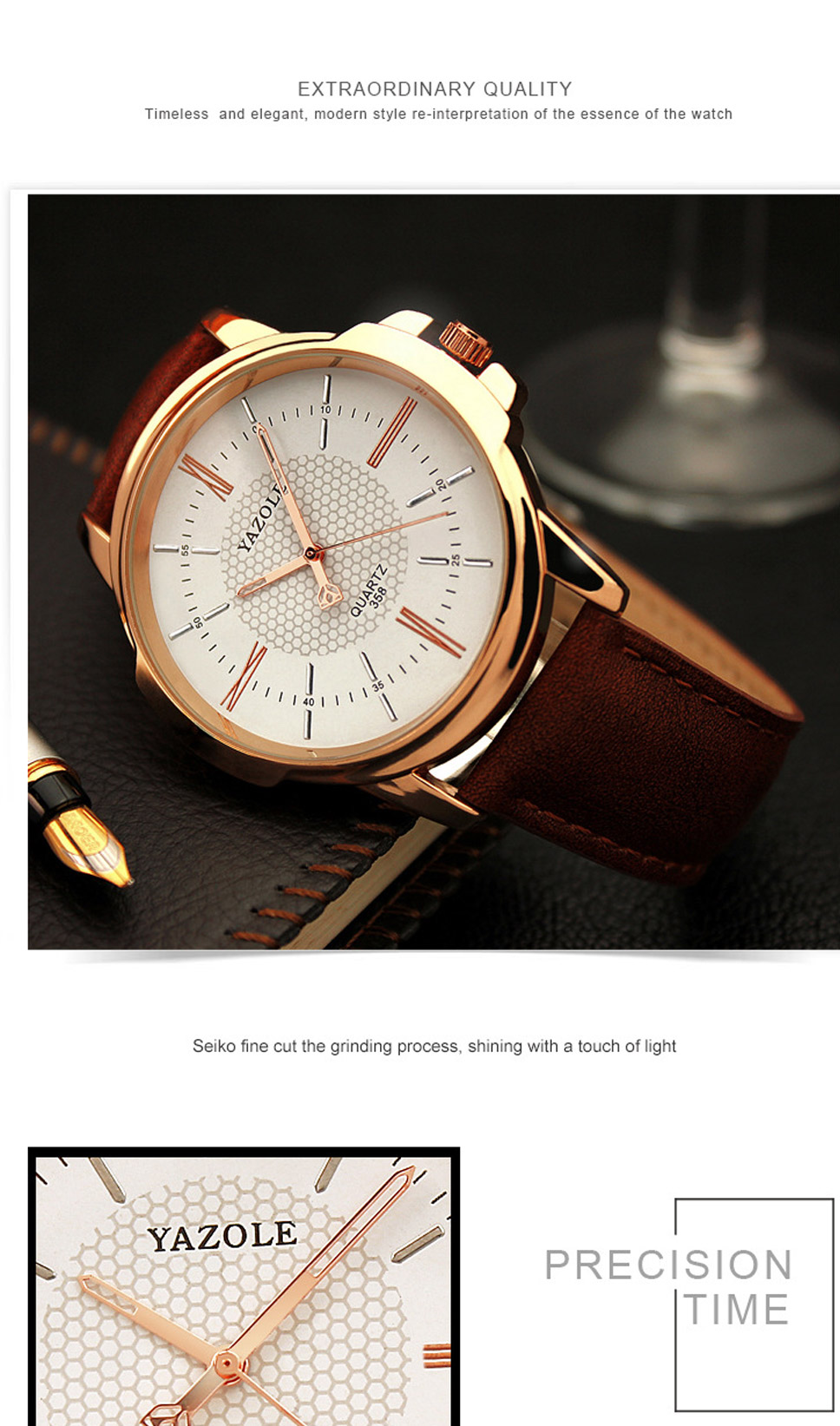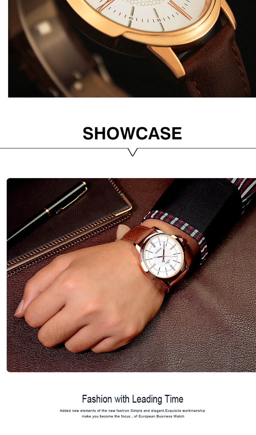Business Men\'s Quartz Watch 4.5cm Digital Wristwatches With Leather Strap Brown