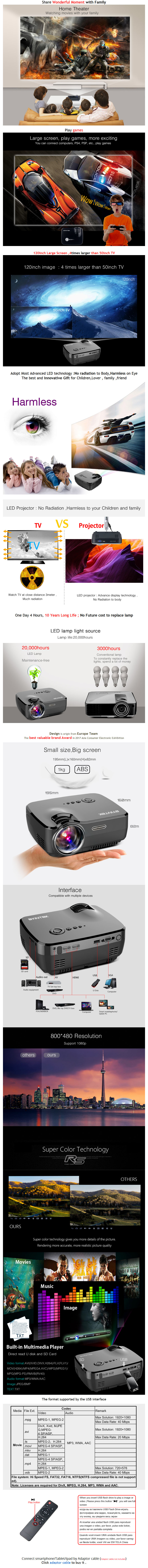 2. LED light utilization rate, high definition 1280 x 800 pixel physical resolution. This means your image quality is very clear. WXGA resolution (1280 x 800) is 3.5 times higher than SVGA resolution (800 x 480) and is suitable for high definition image content. LED light source utilization efficiency, LED light source power is higher, with sufficient light effect.