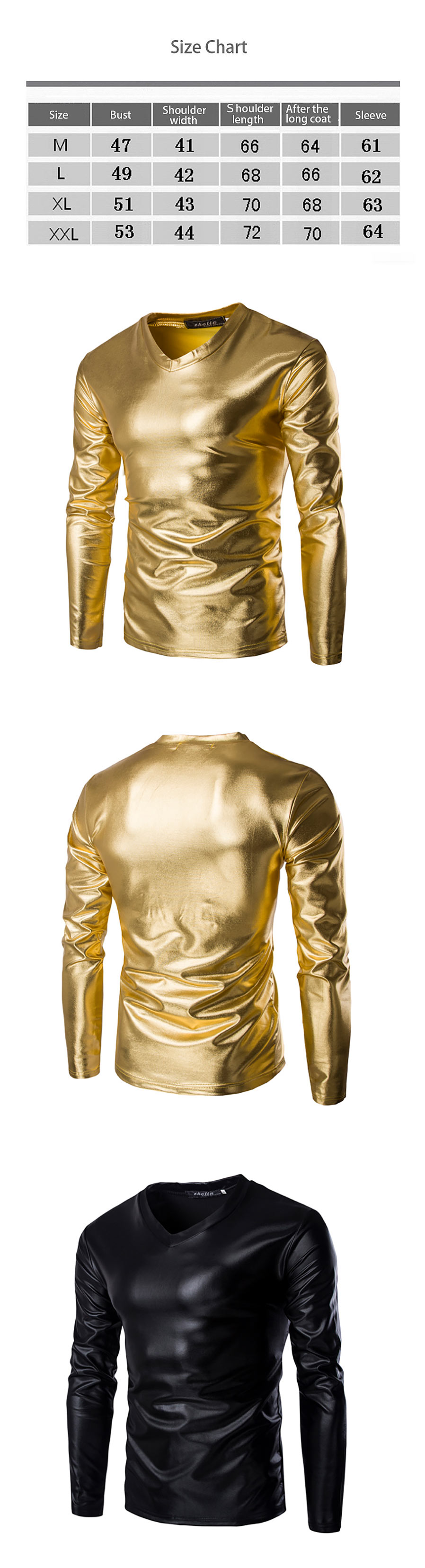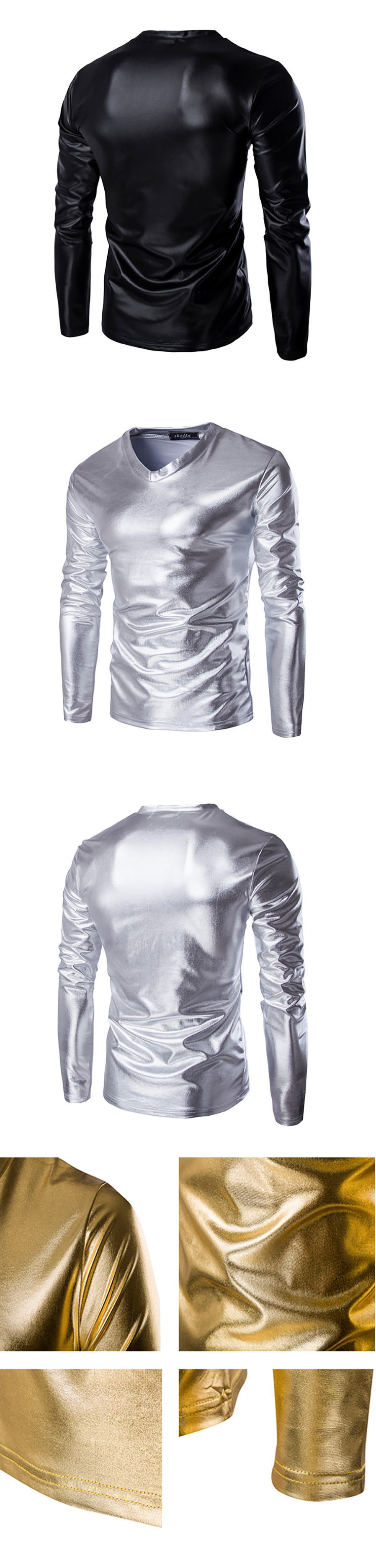 Casual Personalized Glossy V Neck Long Sleeve Men\'s T-Shirt, Male Costume Tee Tops Black/XXL