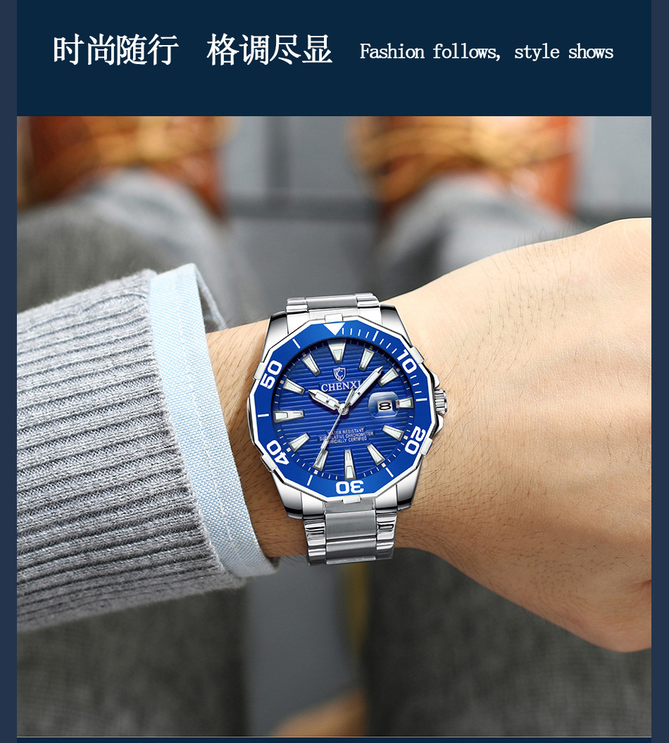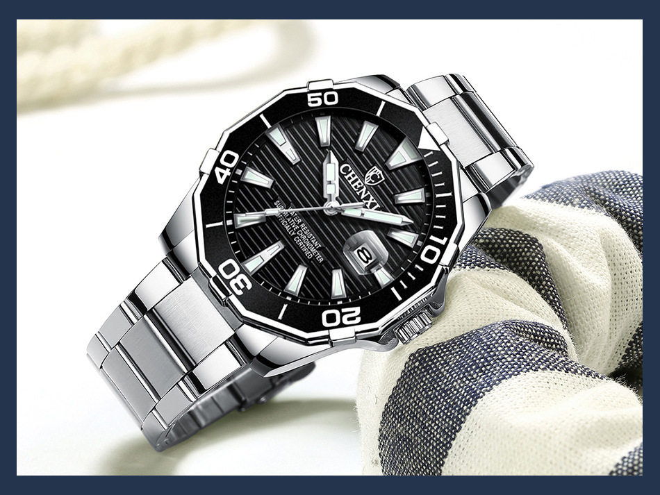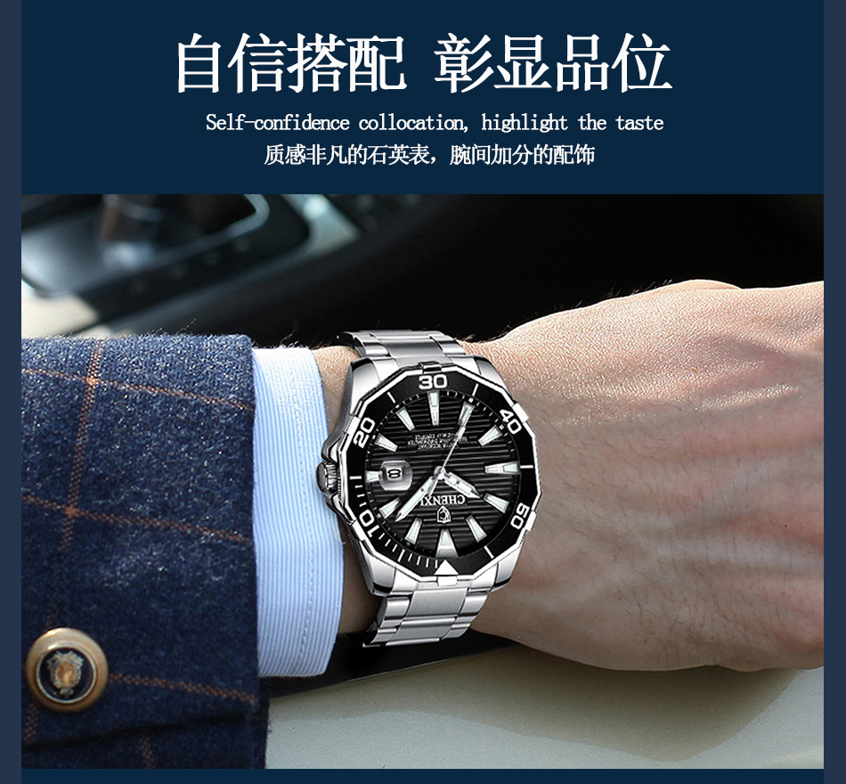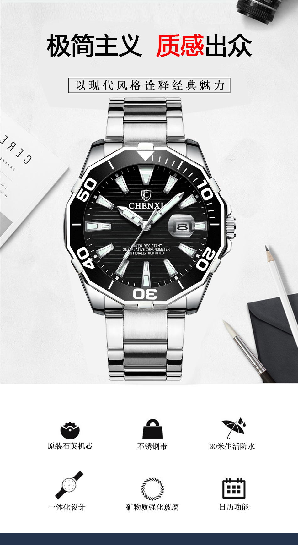CHENXI Fashion Hipster Watch Stainless Steel Business Quartz Watch 8205 Creative Watch Men