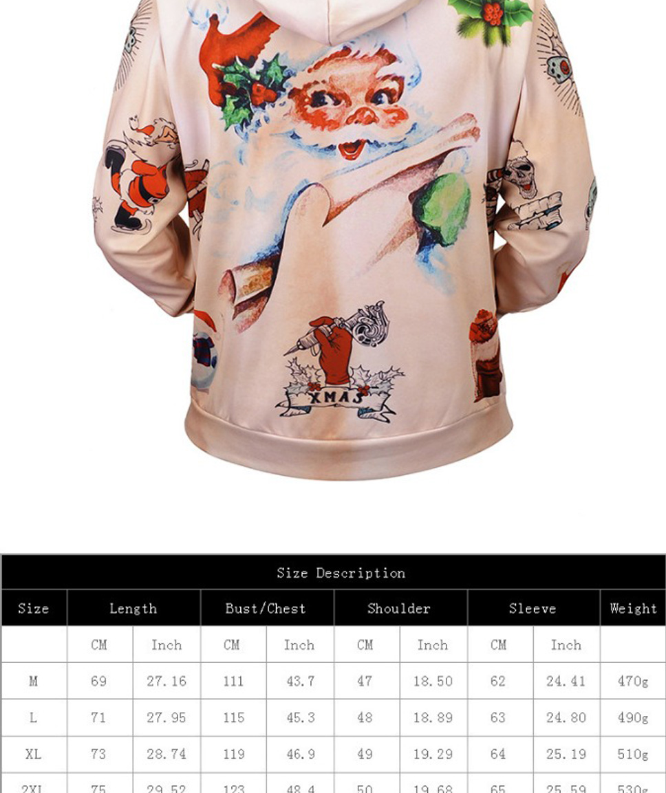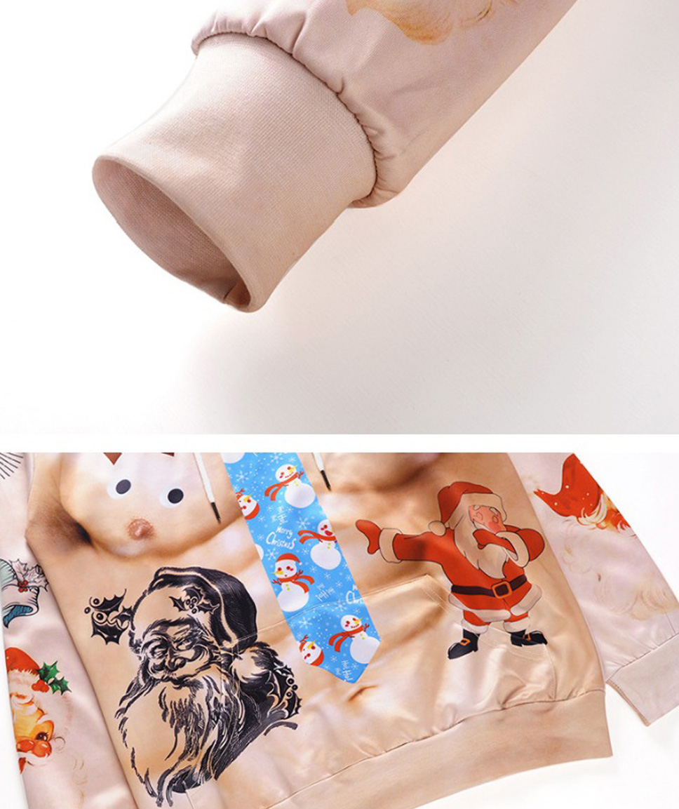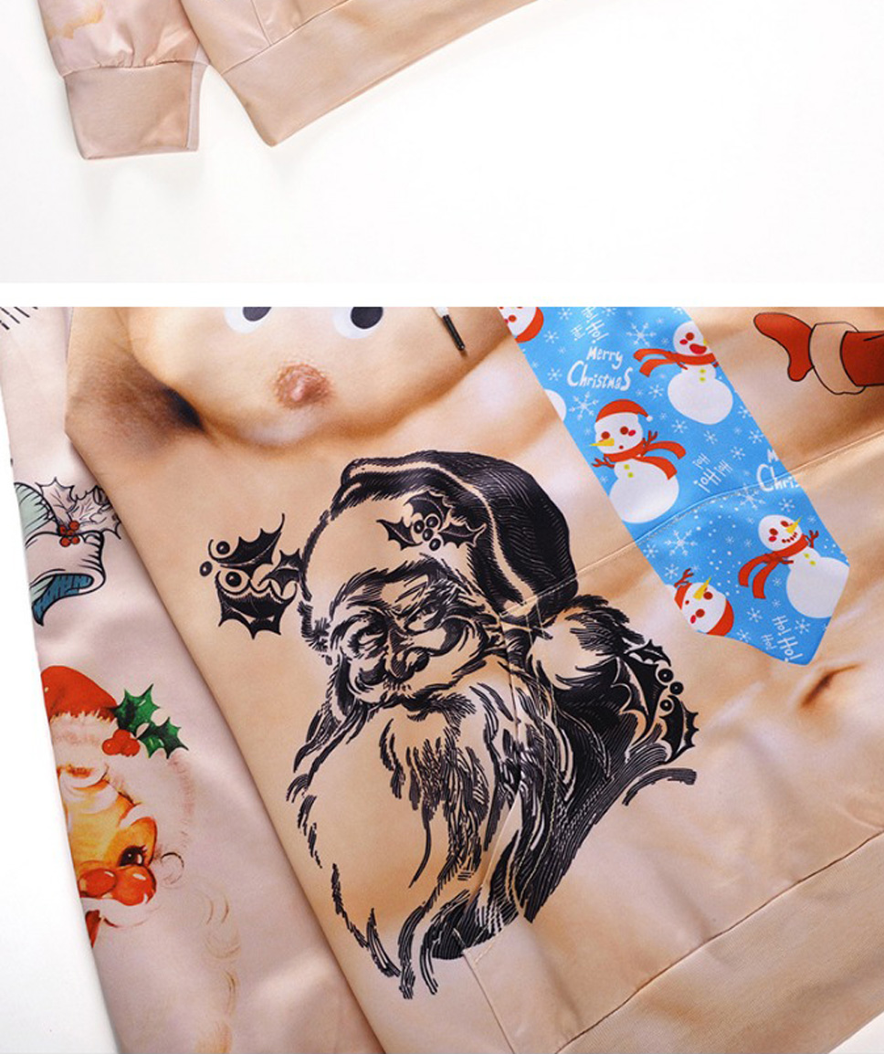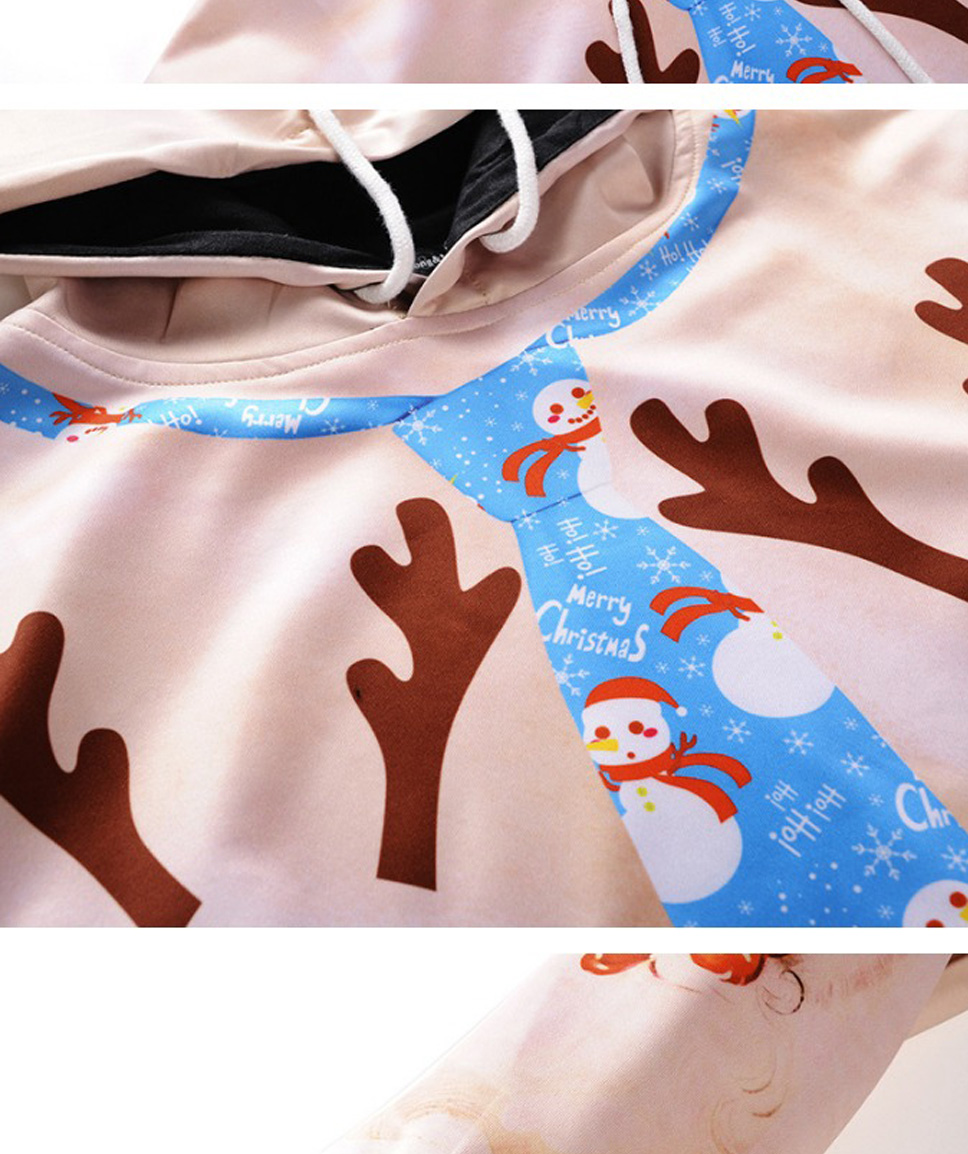 Christmas Autumn Winter Casual Hooded Hoodies 3D Print Cartoon Reindeer Loose Sweatshirts For Men Champagne/XXL