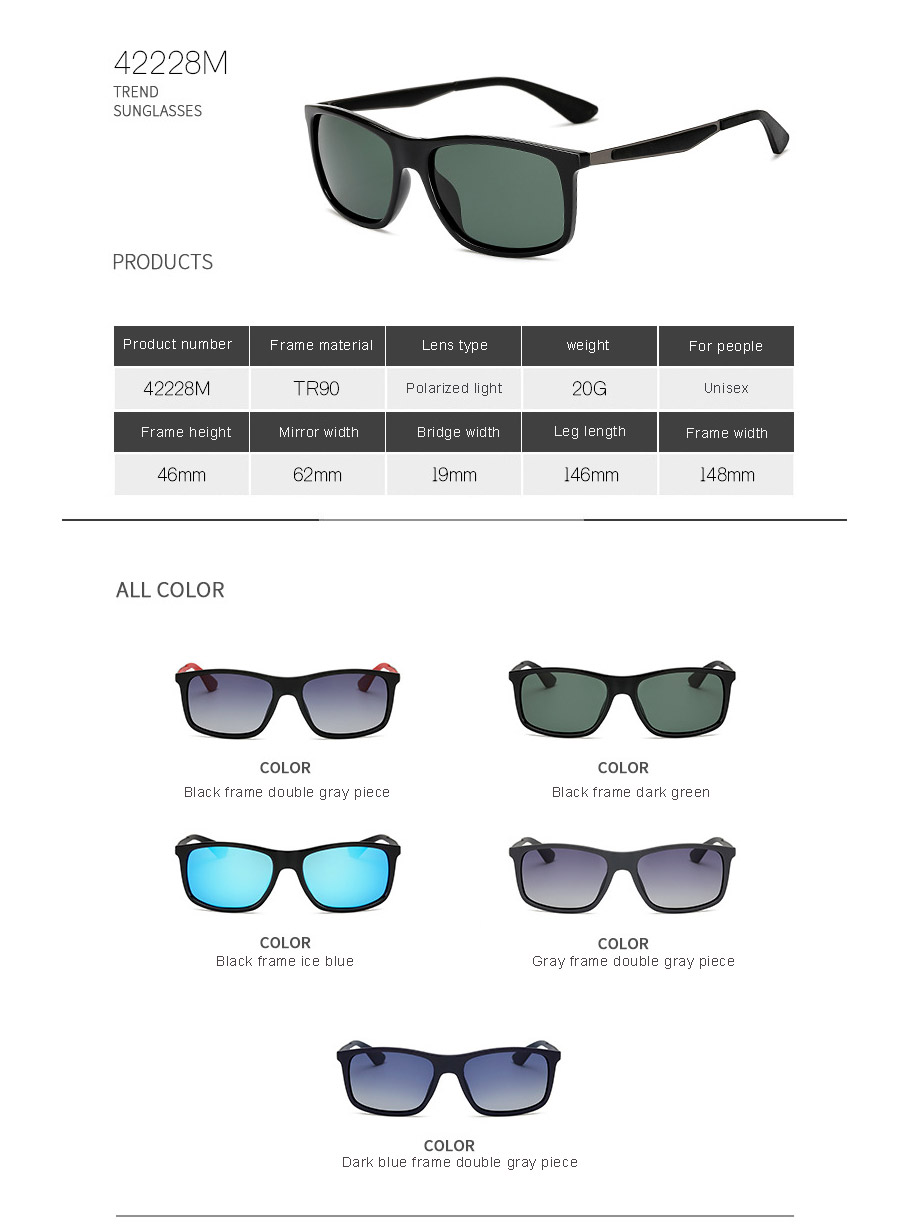 Product Description Model Number: QJ-42228M Lens Width: 62mm Lens Height: 46mm Lenses Optical Attribute: UV400,Polarized Lenses Material: Polaroid Department Name: Adult Gender: Men Frame Material: Plastic Titanium Style: Square 1:...