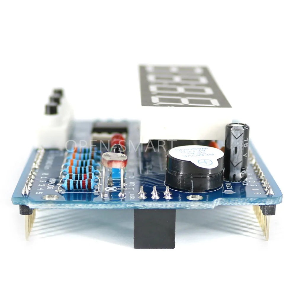 Clock Shield (digital clock module) Shield contains most common resources for a basic electronic project, like buttons, sensors, buzzer and display, it's compatible for Arduino.