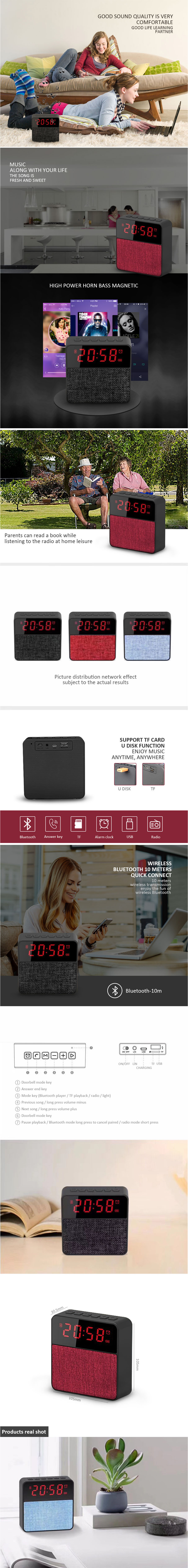 Clock Speaker Bluetooth Wireless Column TF Card Udisk FM Radio Portable Bluetooth Speakers Gray/Speaker