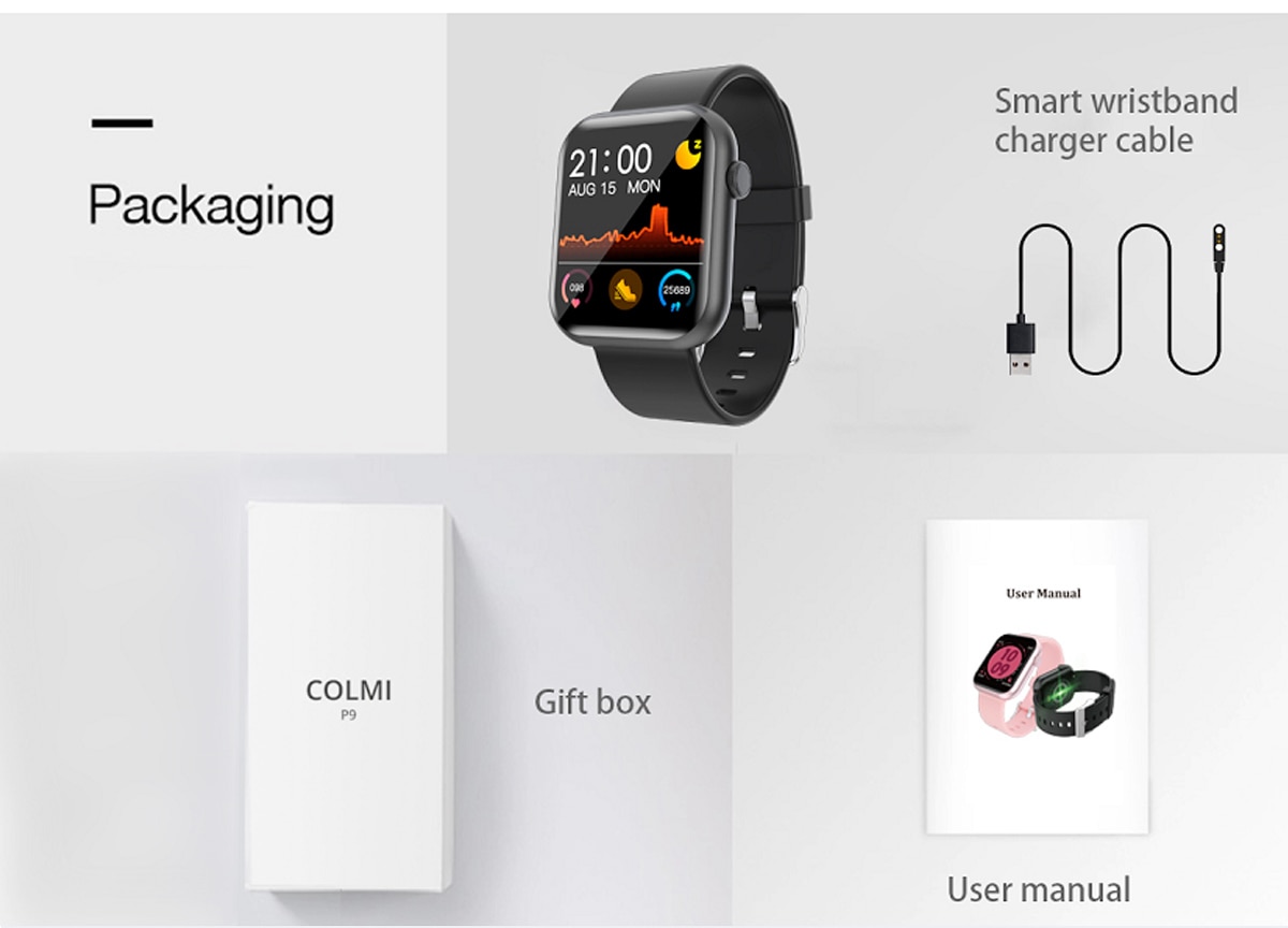COLMI P9 Smart watch * 1 manual pengguna * 1 kabel USB * 1