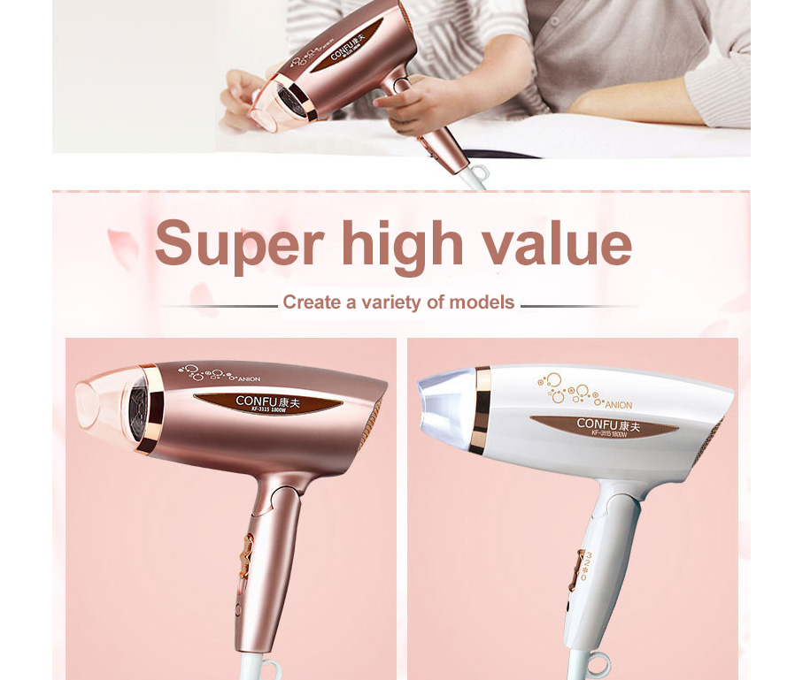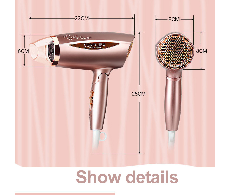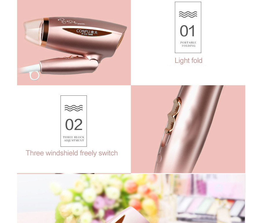 CONFU 3115 Household Electric Hair Dryer Machine, Large Power 1800W 3-Mode Hot / Cold Air Folding Hairdryer Gold