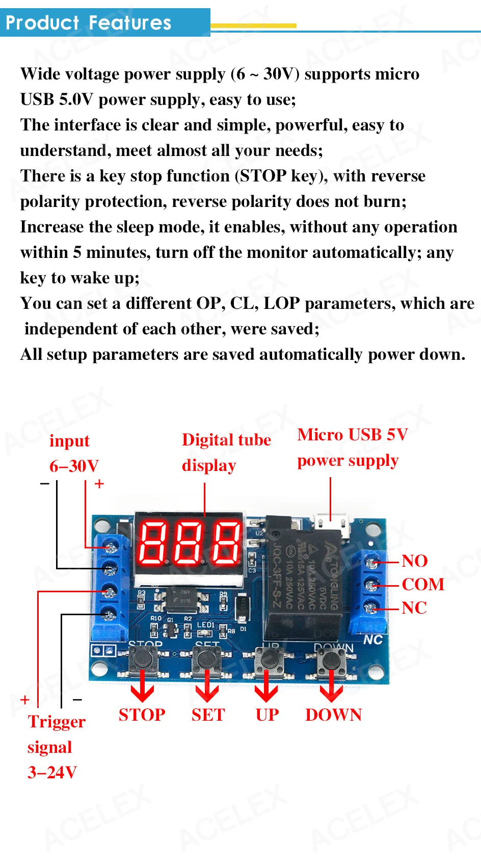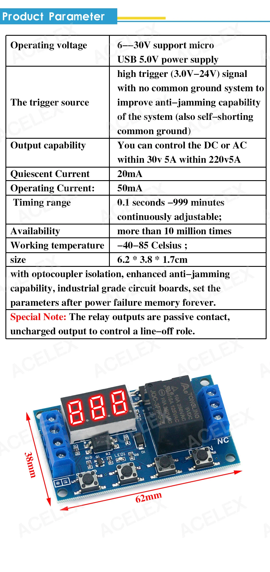 DC 6-30V Support Micro USB 5V LED Display Automation Cycle Delay Timer Control Off Switch Delay Time Relay 6V 9V 12V 24V