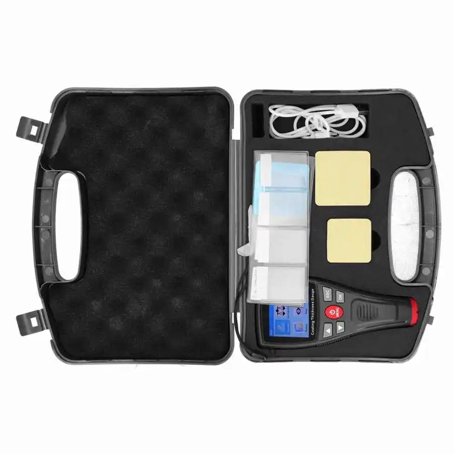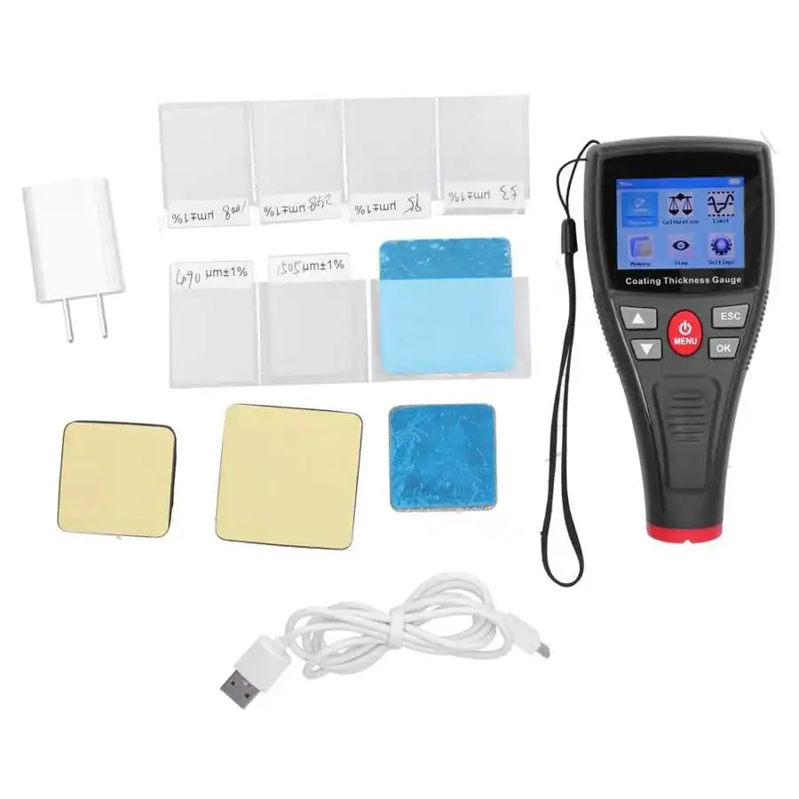 Feature: Specification: Item Type: Coating Thickness Gauge Package List: 1 x Coating Thickness Gauge (Battery Not Included) 1 x USB Cable 1 x Adapter 2 x Iron Substrate 2 x Base Plate 6 x Calibration Plate 1 x Carrying Case 1 x Manual Note: