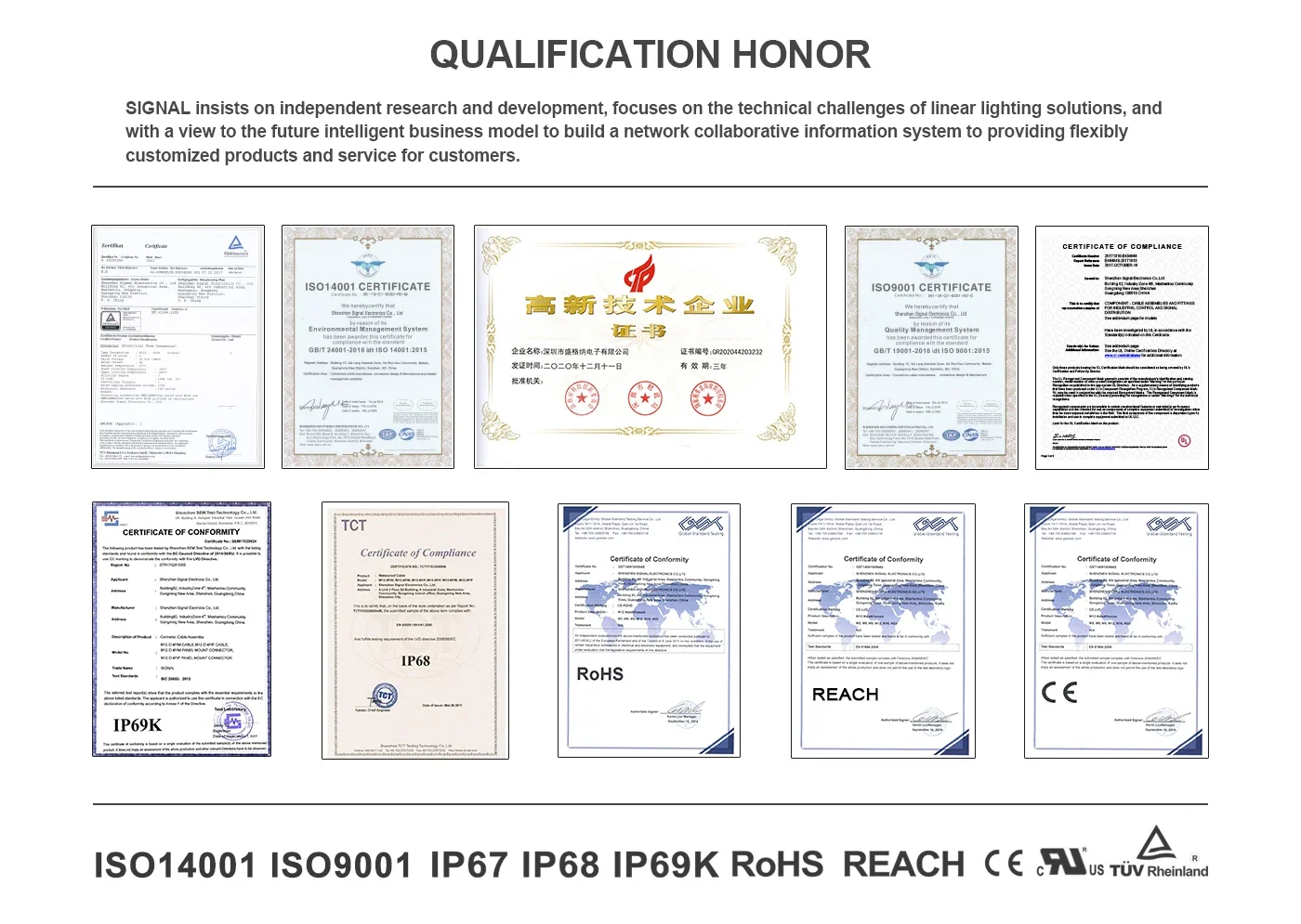 Our products are passed the inspection standards included IP68, IP69K, CE, RoHS, UL, TUV, with 100% quality.