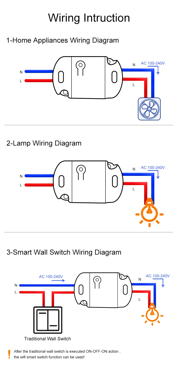 II.Wi-Fi Remote Control:You can use "Smart Life" APP in your smart phone to control the switch wirelessly with Wi-Fi or 4G network.no hub required.