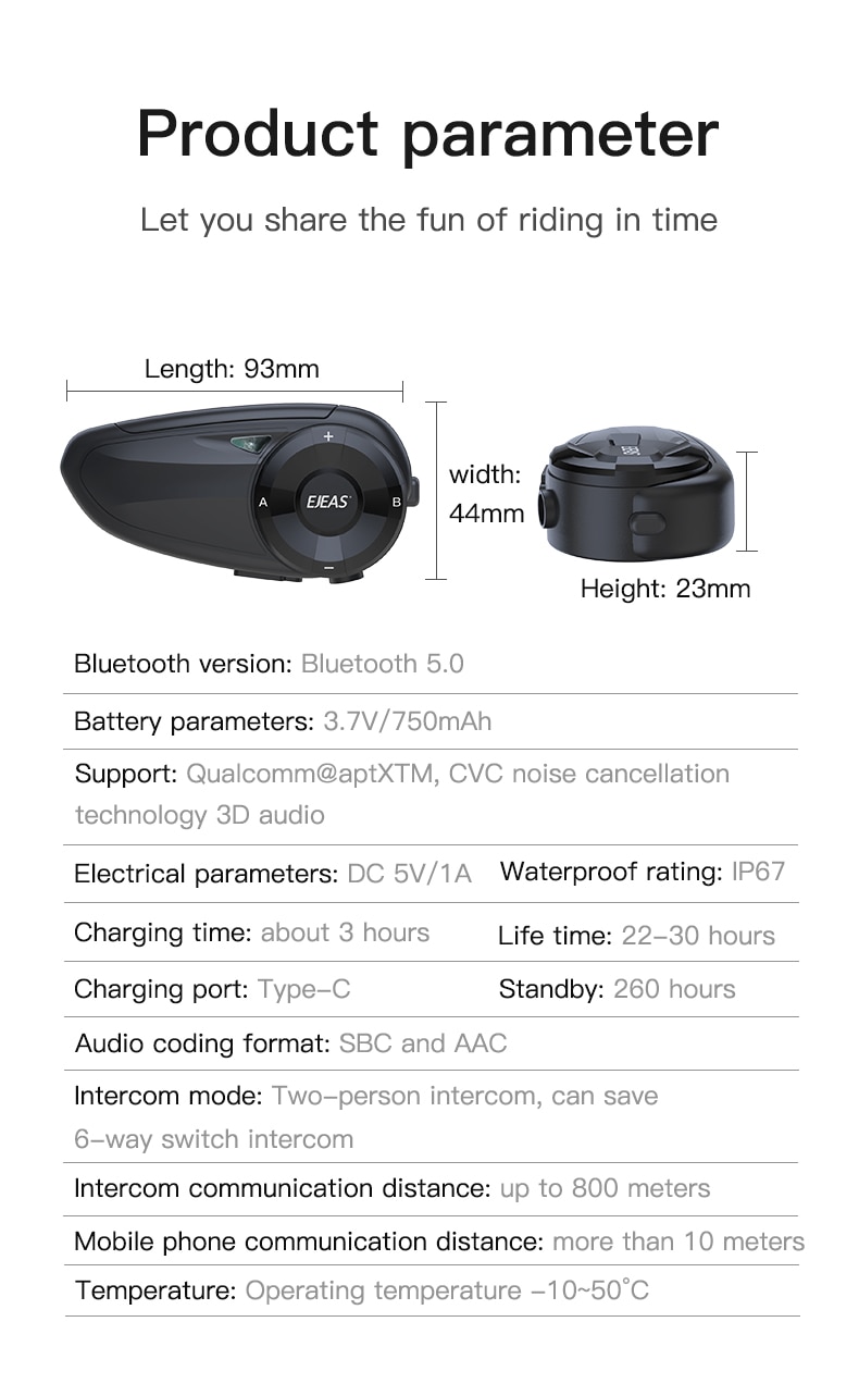 Quick7 is a cost-effective Bluetooth communication system for motorcycle helmets.Qualcomm 5.0 chip is adopted to quickly pair in one second. The maximum communication distance is 600 meters. It can realize seven people switching and talking with each other. Standard FM, it can automatically answer the phone, more convenient and safe to use; Good waterproof performance, can be used with confidence in rainy days; Optional controller makes it easier for you to operate in cycling; Specially designed stereoscopic sound effect allows you to enjoy the fun of riding anytime and anywhere.