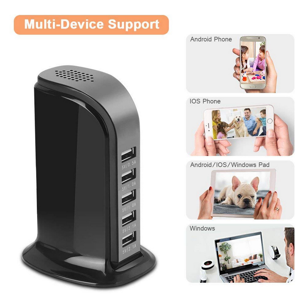 ?€�Multi-USB Ports?€¡®5-USB Port has large compatibility which can charge multiple USB devices at the same time to meet your power demands with safe guarantee. 4.7 ft power cable is long enough to let the charger reach further.It is not only a mini camera,but also a perfect charging station for use in the hotel or conference room, guest room.