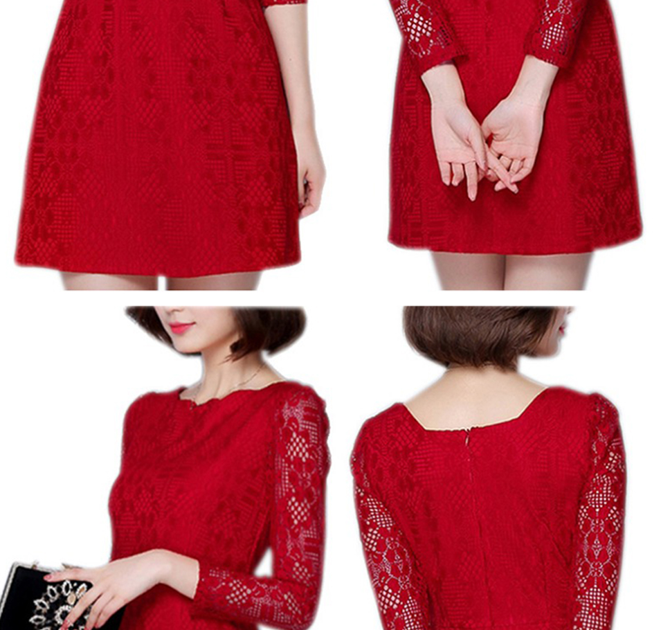 Europe And America Dress O-Neck Long Sleeve Lace Office Lady Wave Edge Slim Dresses For Women Red/XL/170