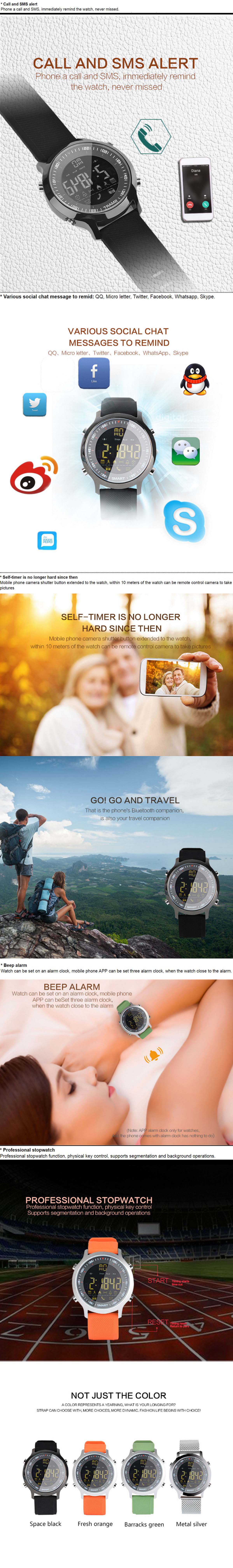 * BLE4.0, Call and SMS alert and Various social chat message to remind: QQ, Micro letter, Twitter, Facebook, Whatsapp, Skype