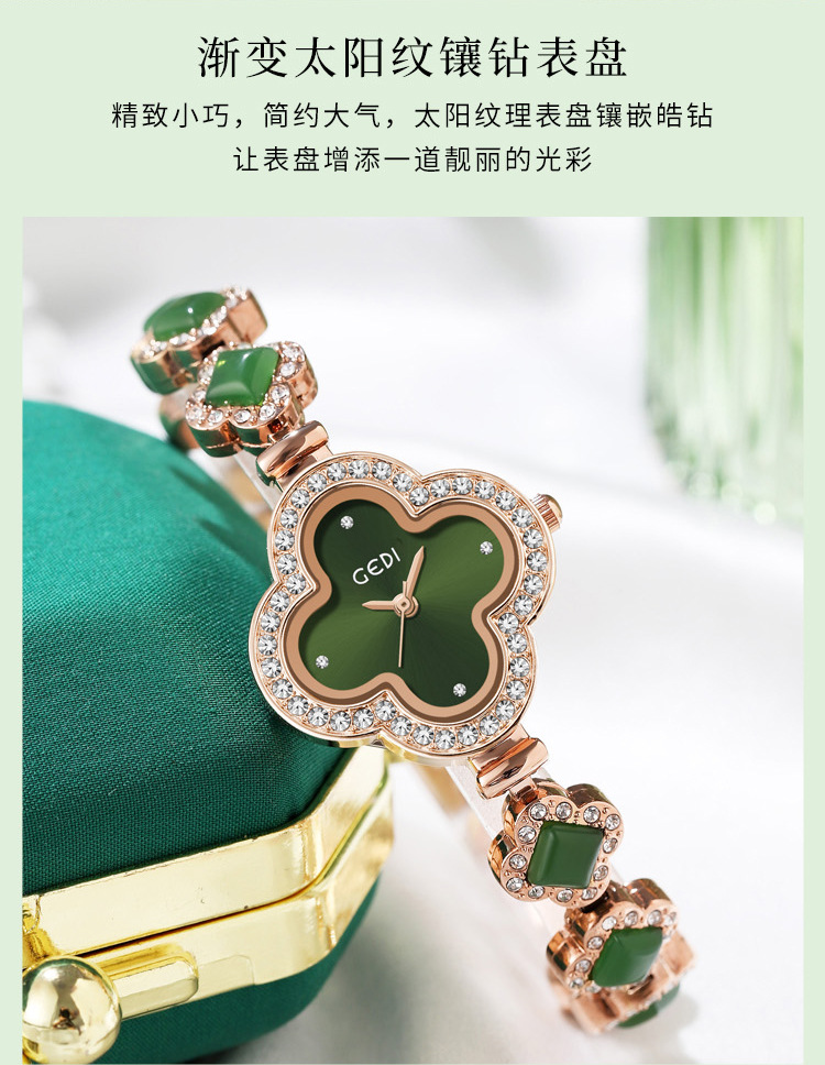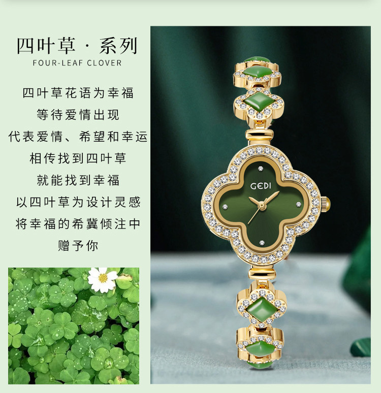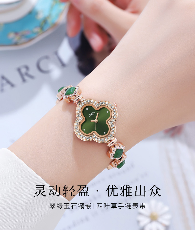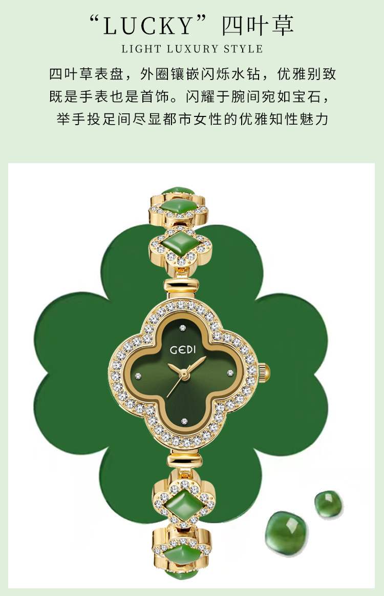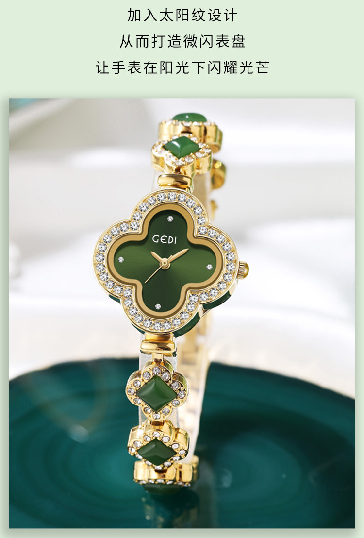 GEDI 52076 women watch New Lucky Four-Leaf Watch Special Interest Light Luxury Green Agate Bracelet Watch Quartz Women's Watch