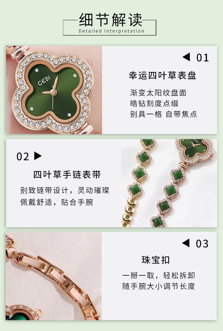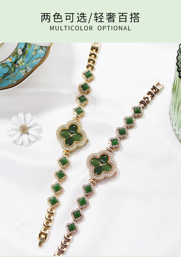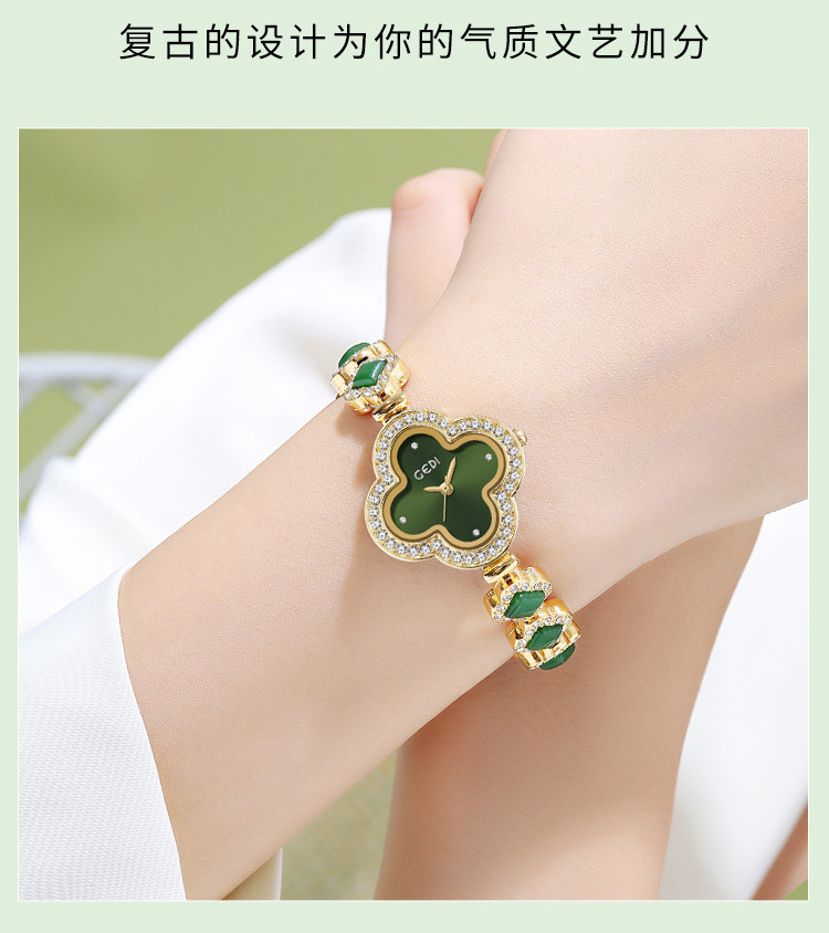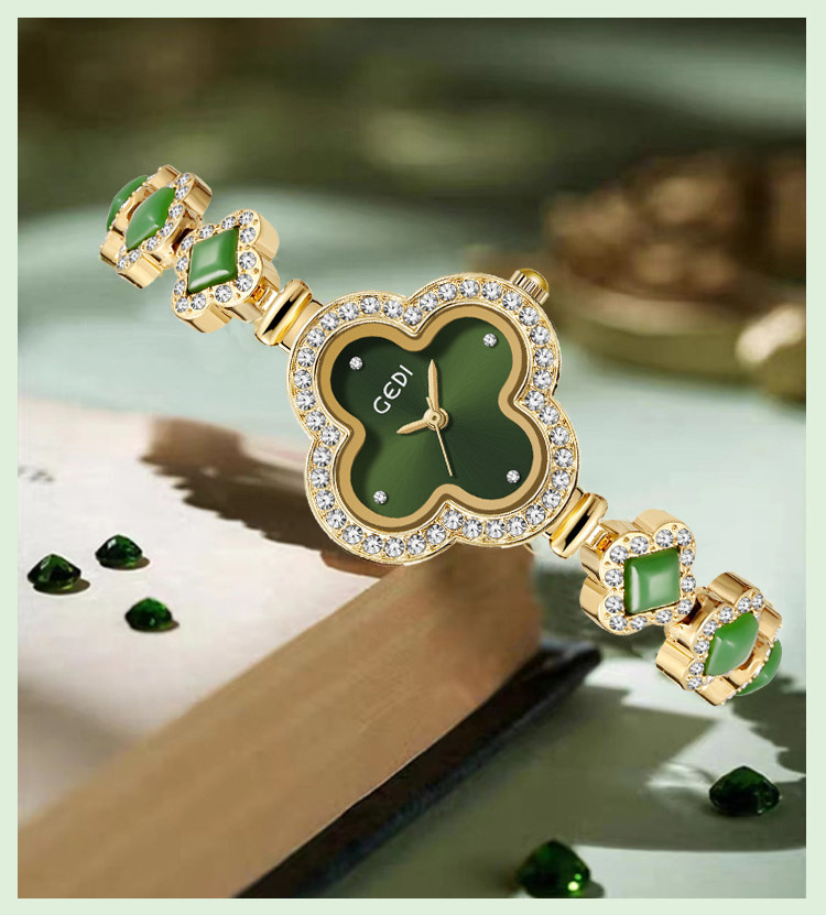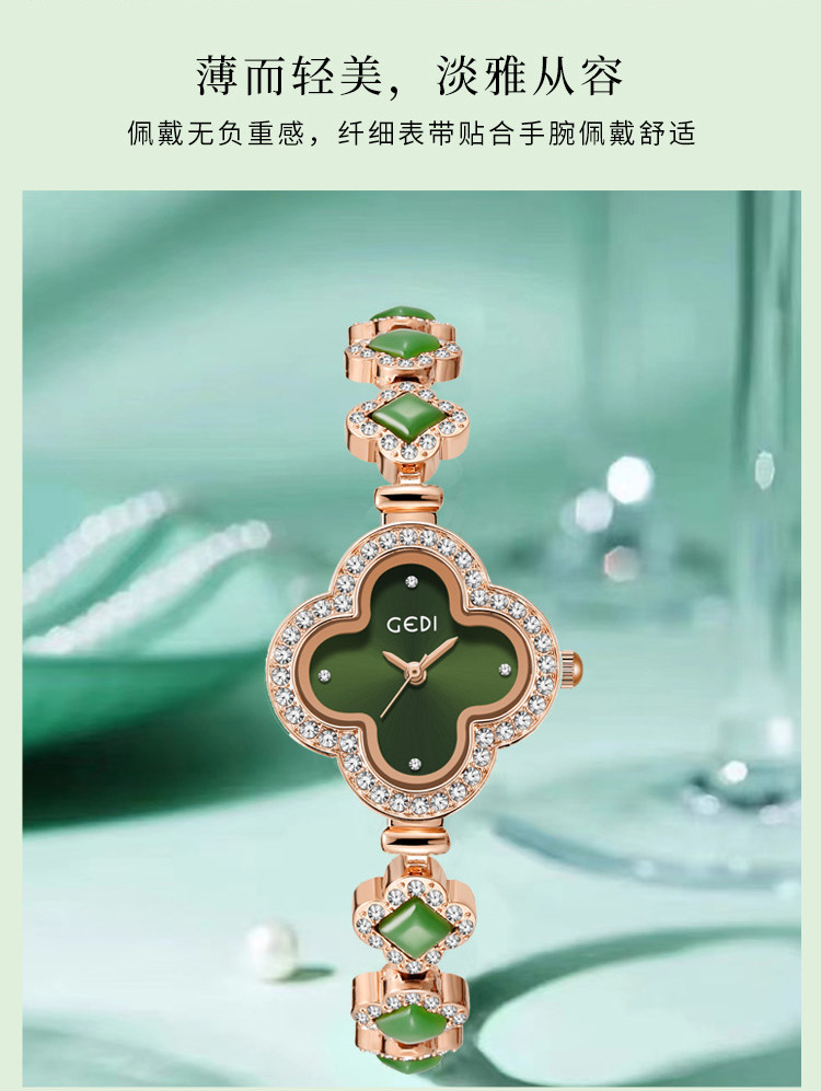 GEDI 52076 women watch New Lucky Four-Leaf Watch Special Interest Light Luxury Green Agate Bracelet Watch Quartz Women's Watch
