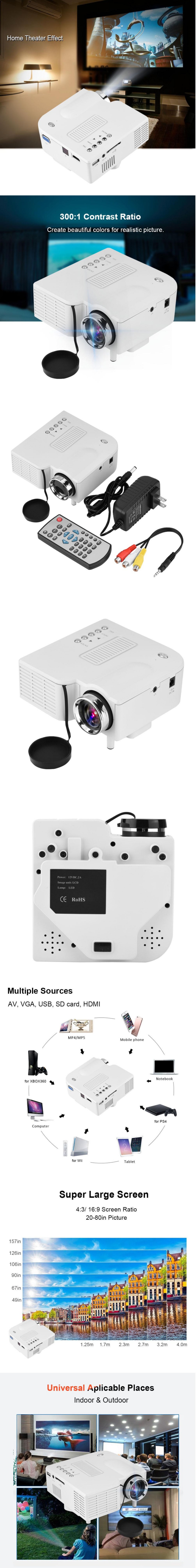 Multiple Sources - The LED projector supprots AV, VGA, USB, SD card, and HDMI input. Gives you more audio-visual enjoyment.