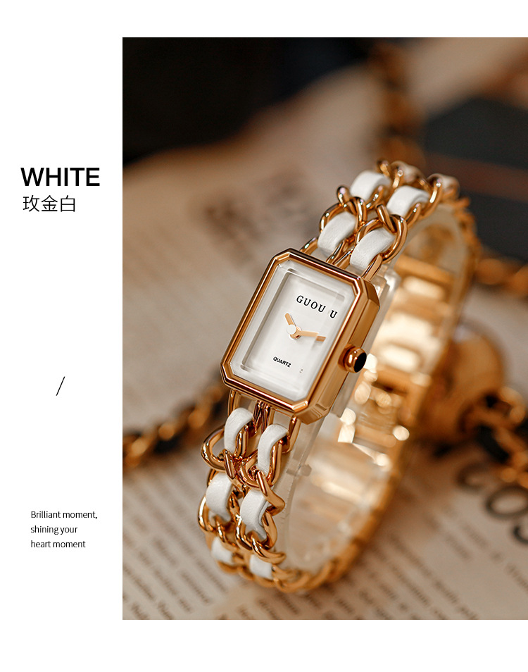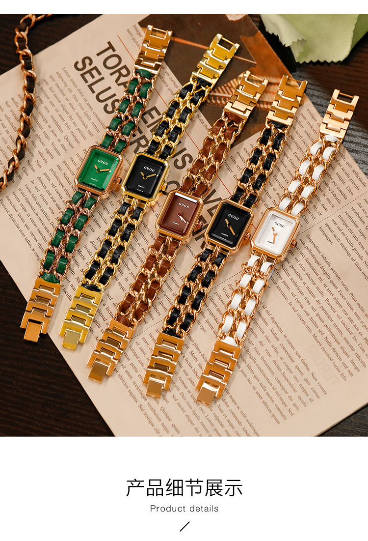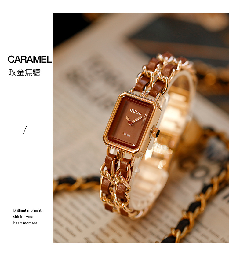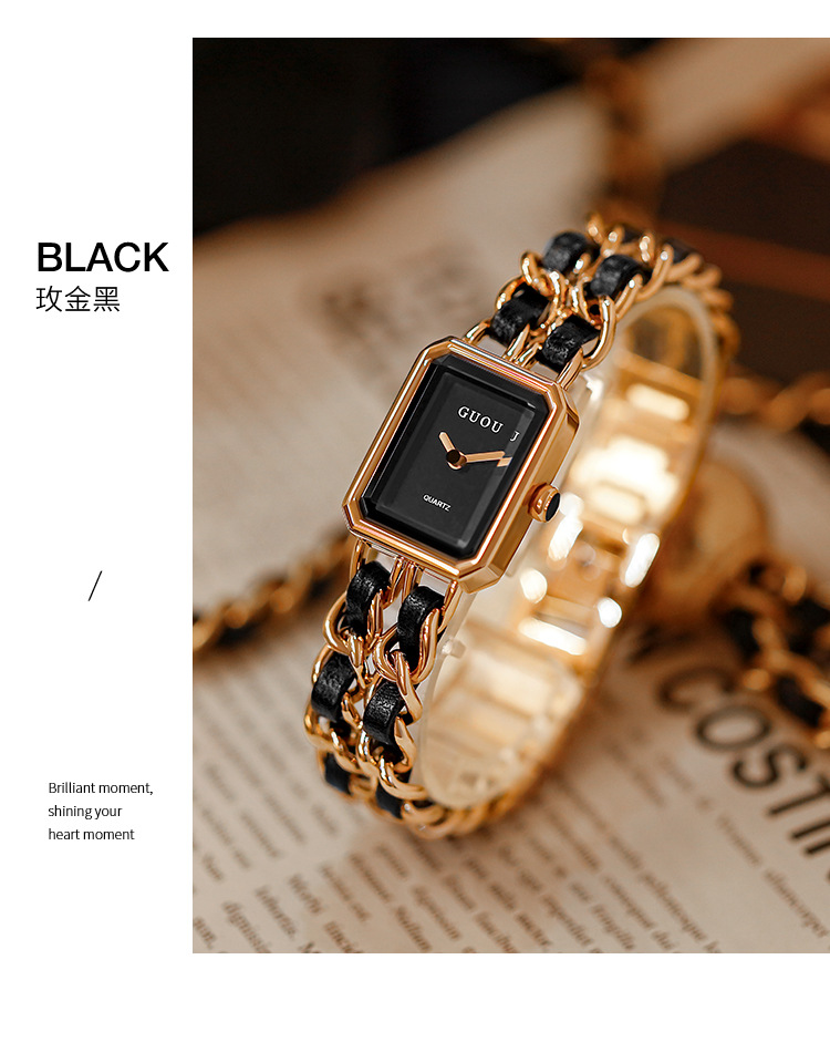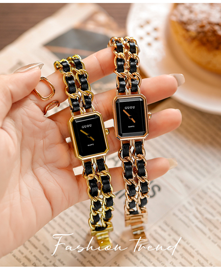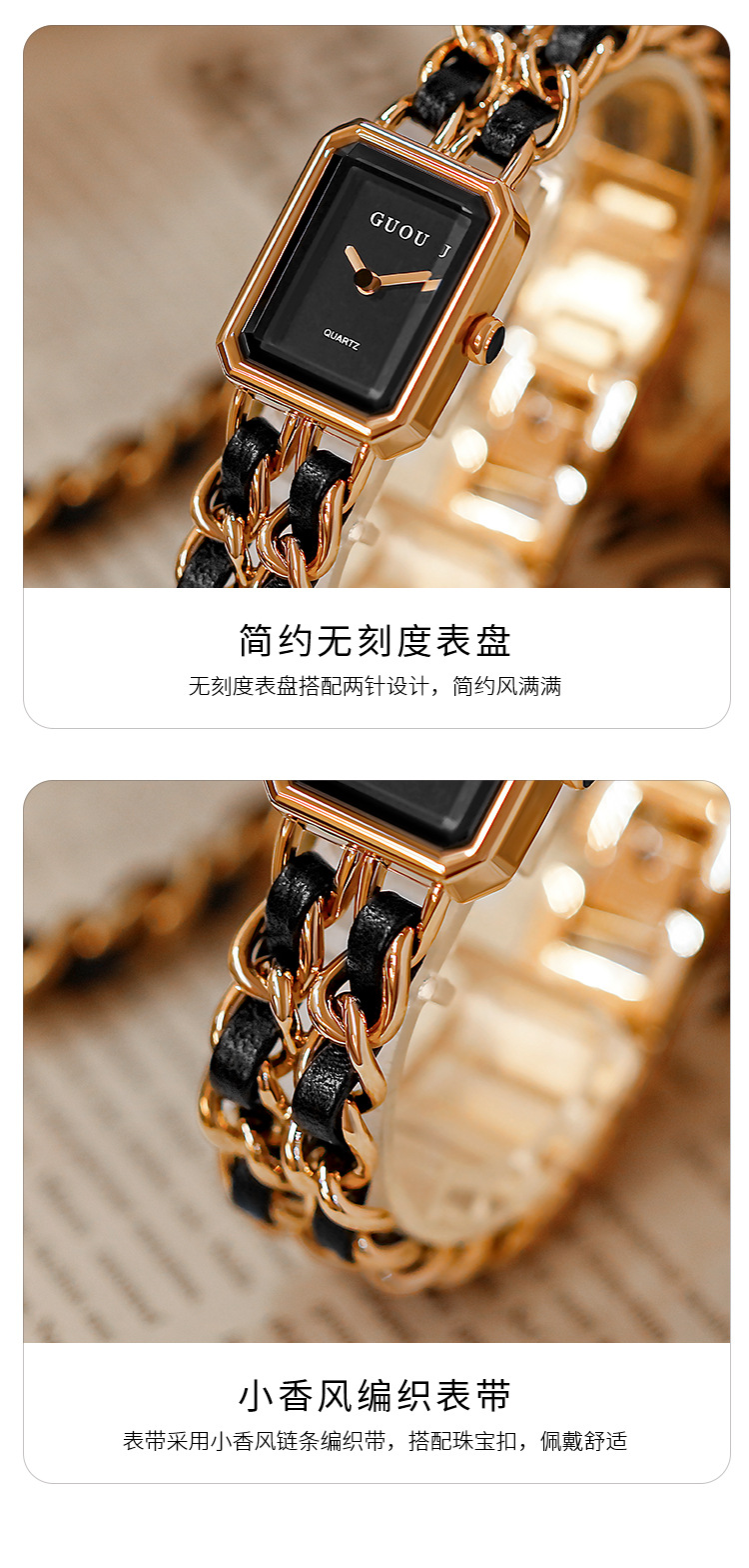 GUOU Bracelet Watch Women's 2022 New Simple Small Square Braided Strap Vintage Ladies Watch 6042