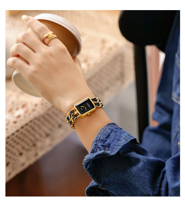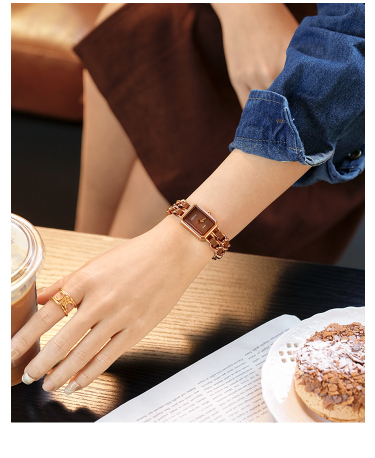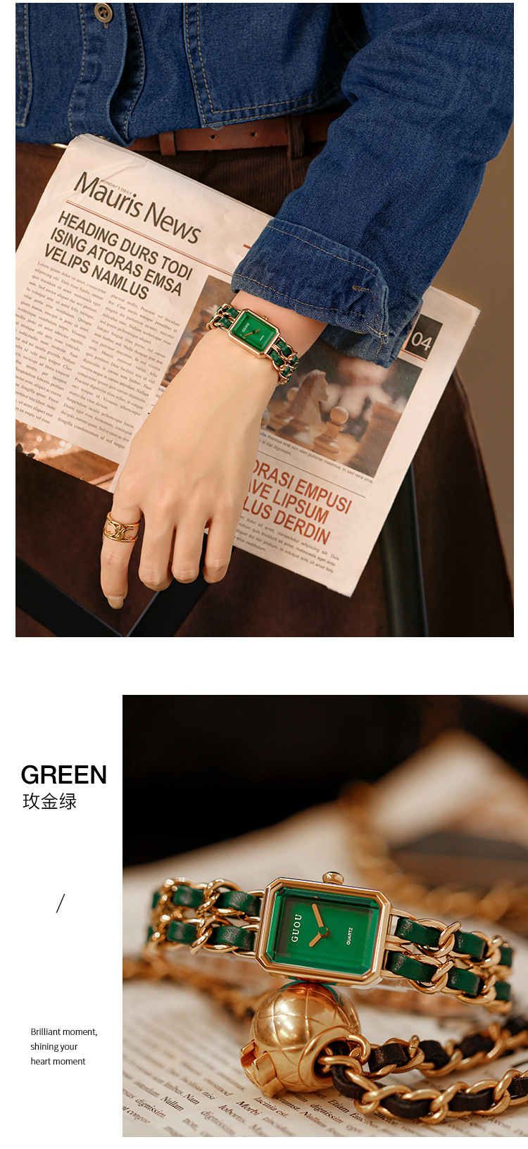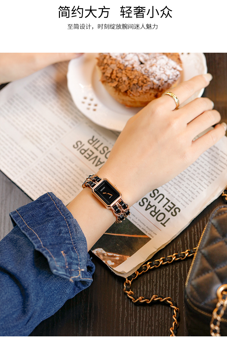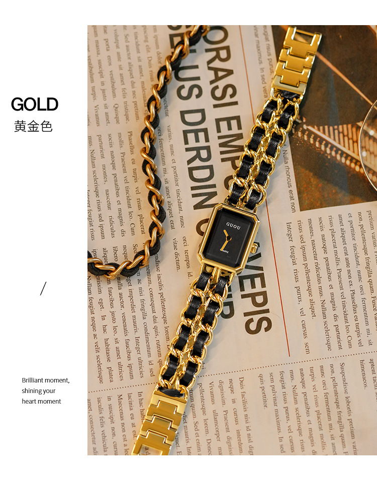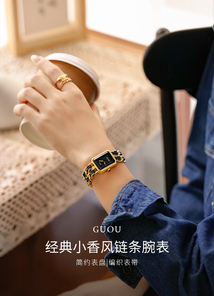 GUOU Bracelet Watch Women's 2022 New Simple Small Square Braided Strap Vintage Ladies Watch 6042