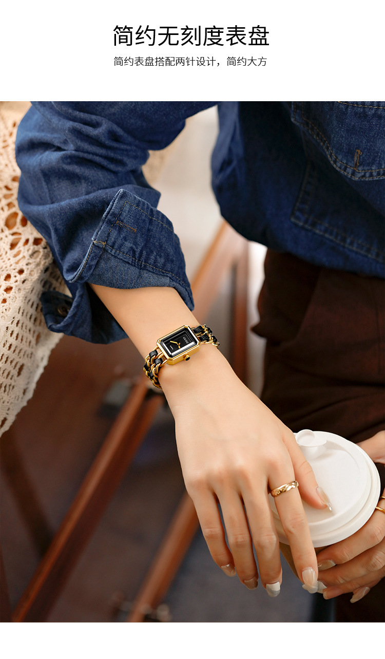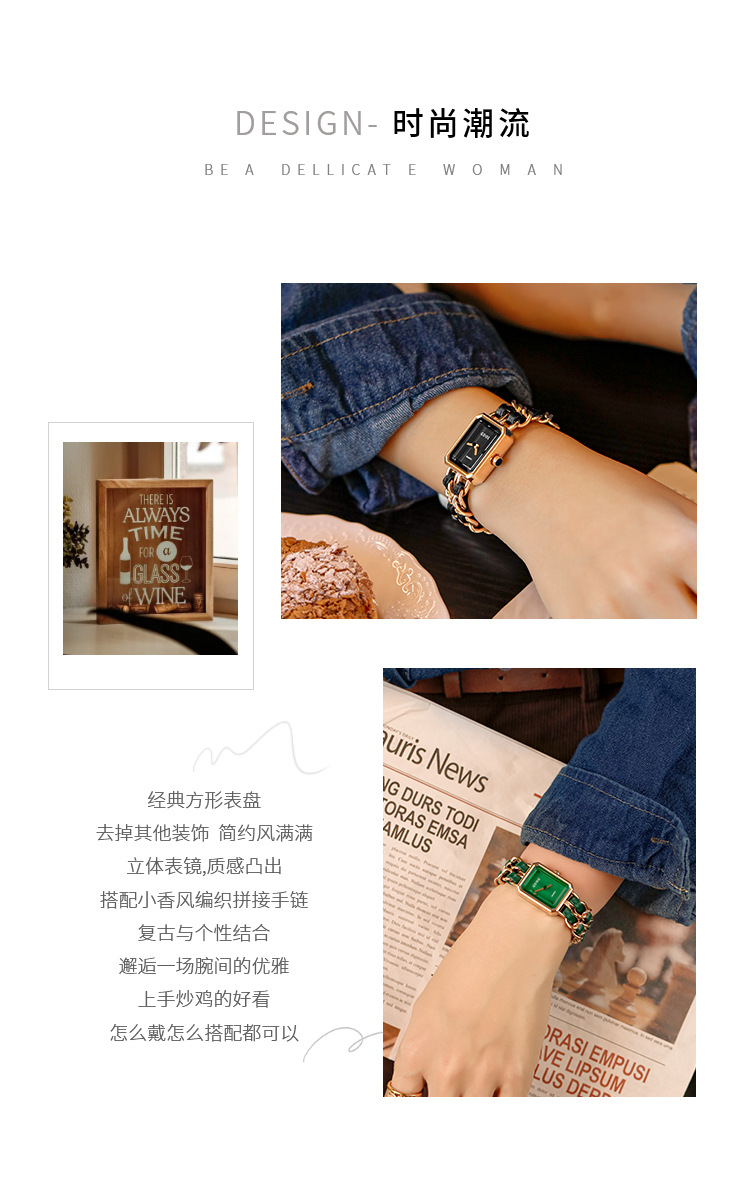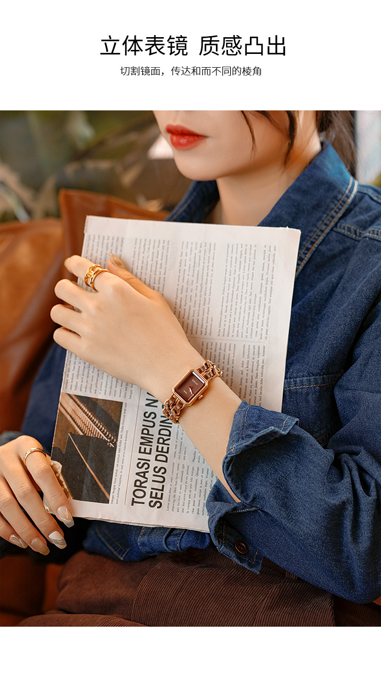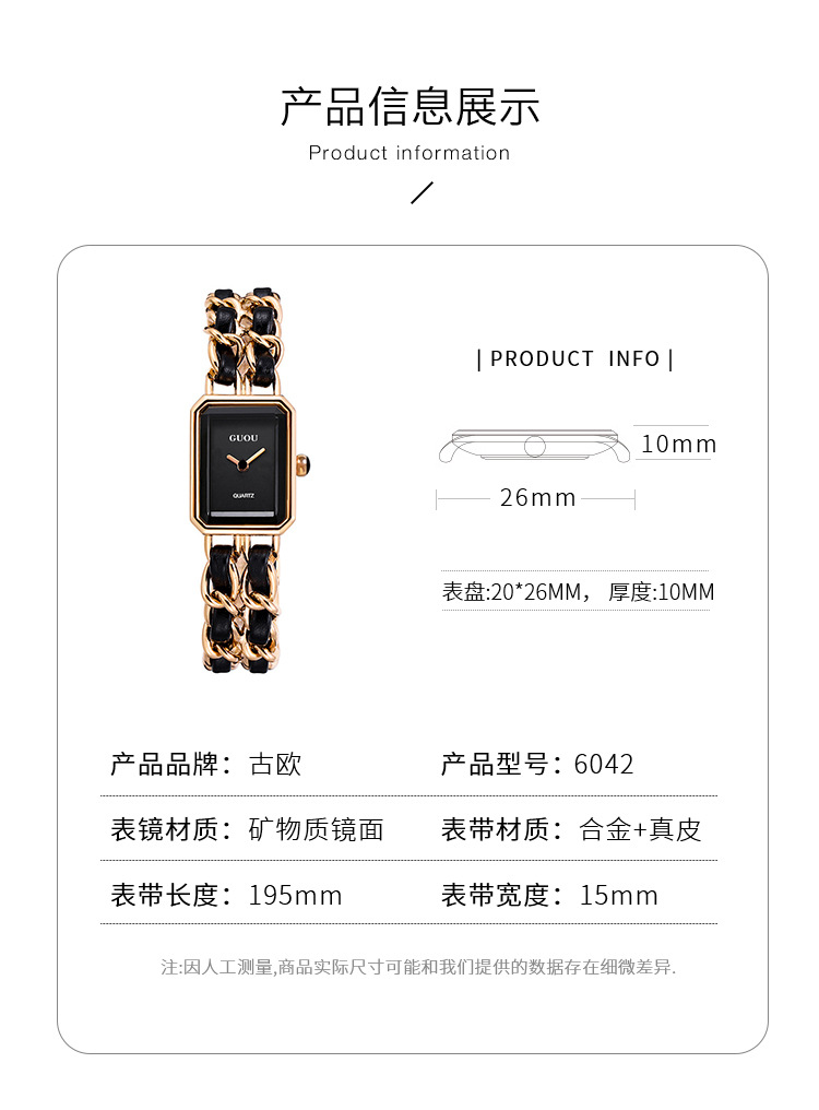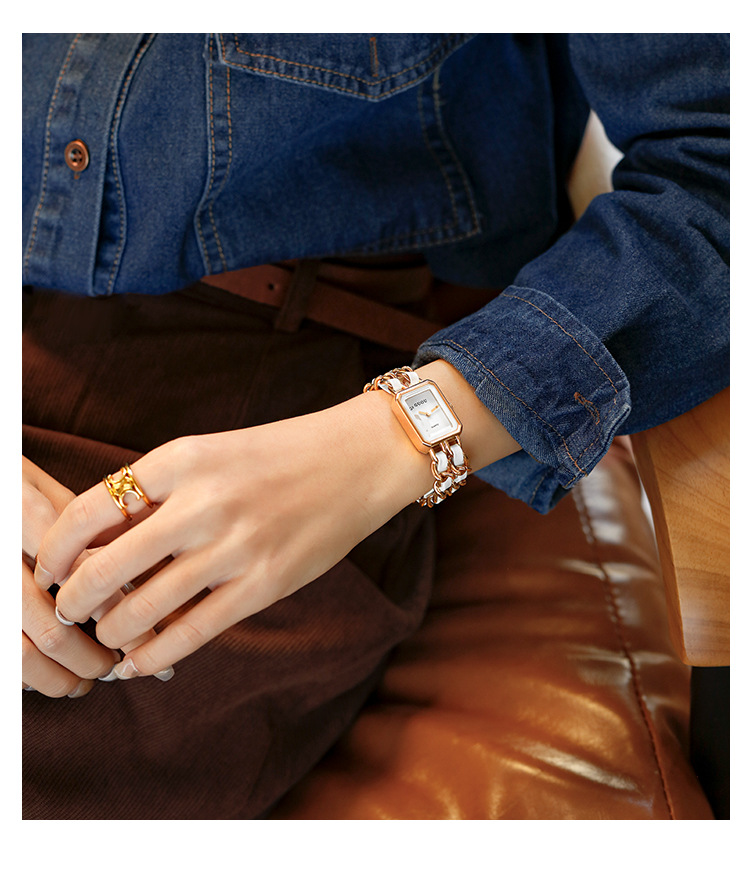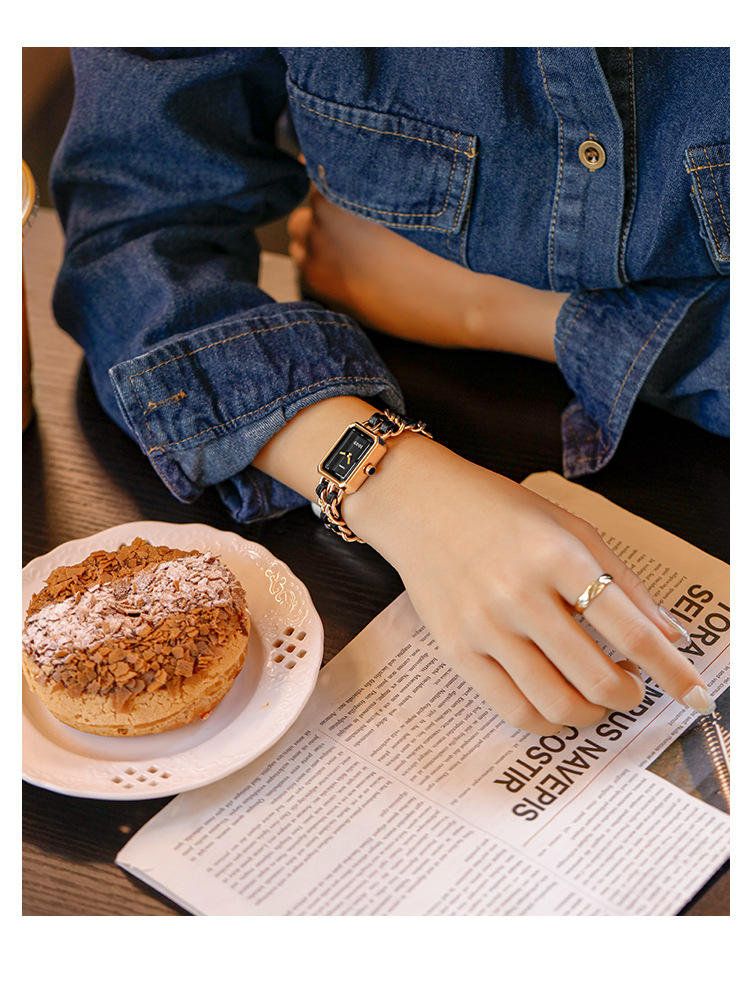 GUOU Bracelet Watch Women's 2022 New Simple Small Square Braided Strap Vintage Ladies Watch 6042