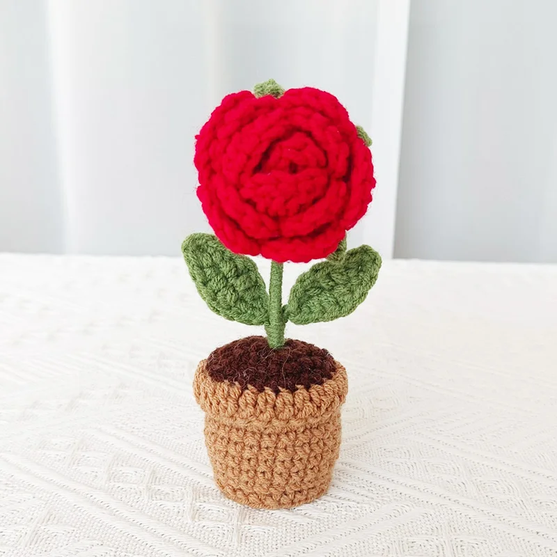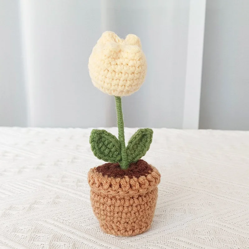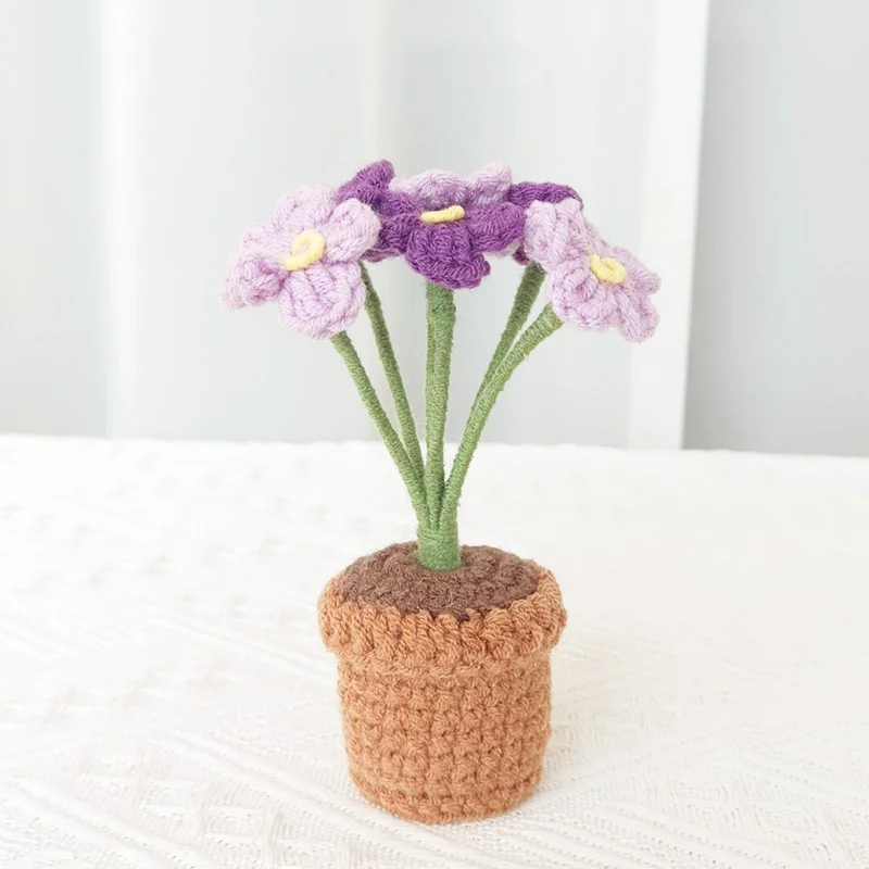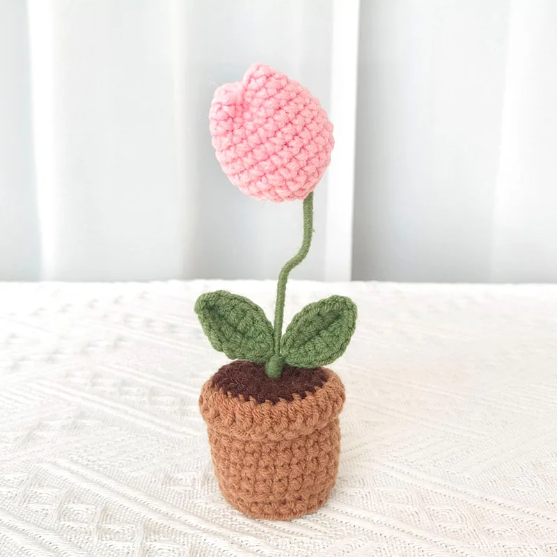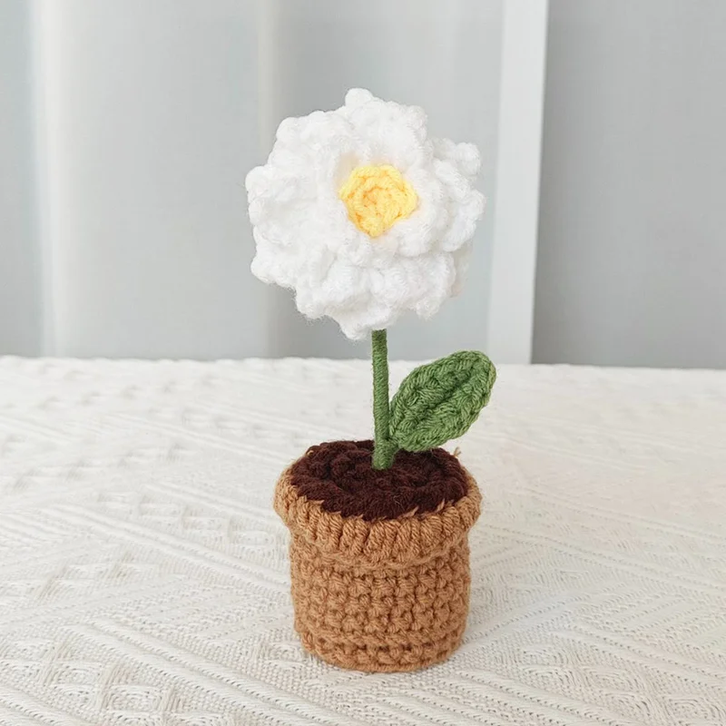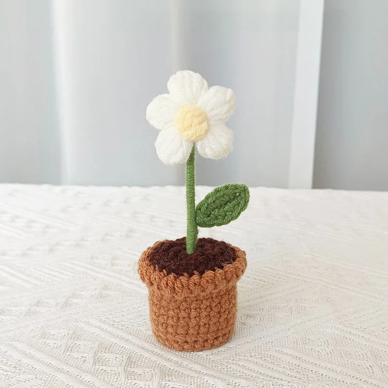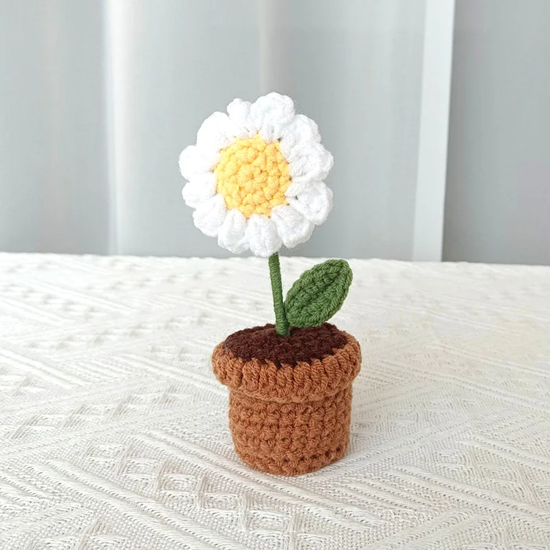 Handcrafted Mini Crochet Flower Bouquet Bonsai Knitted Daisy Tulip Rose Sunflower Artificial Plants Flowers Decor For Home Car