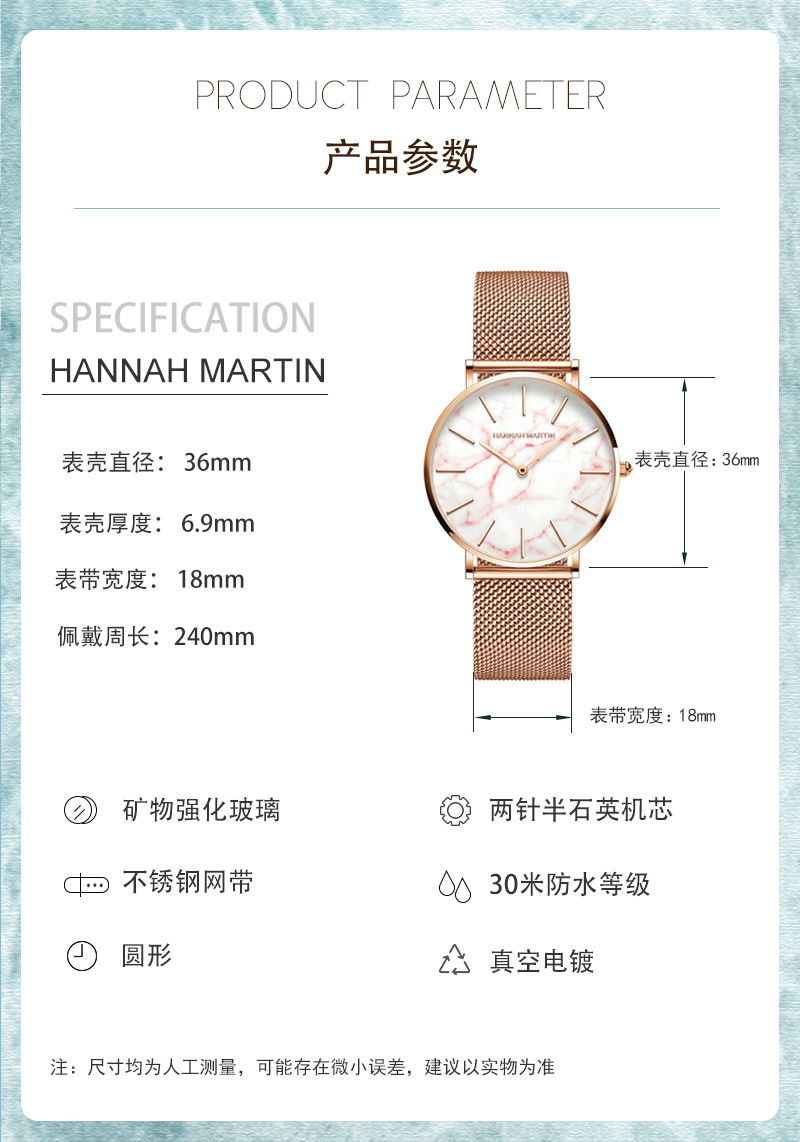 Hannah Martin 2021 new Japanese movement watch simple fashion leisure personalized quartz stainless steel women's watch hm-st36