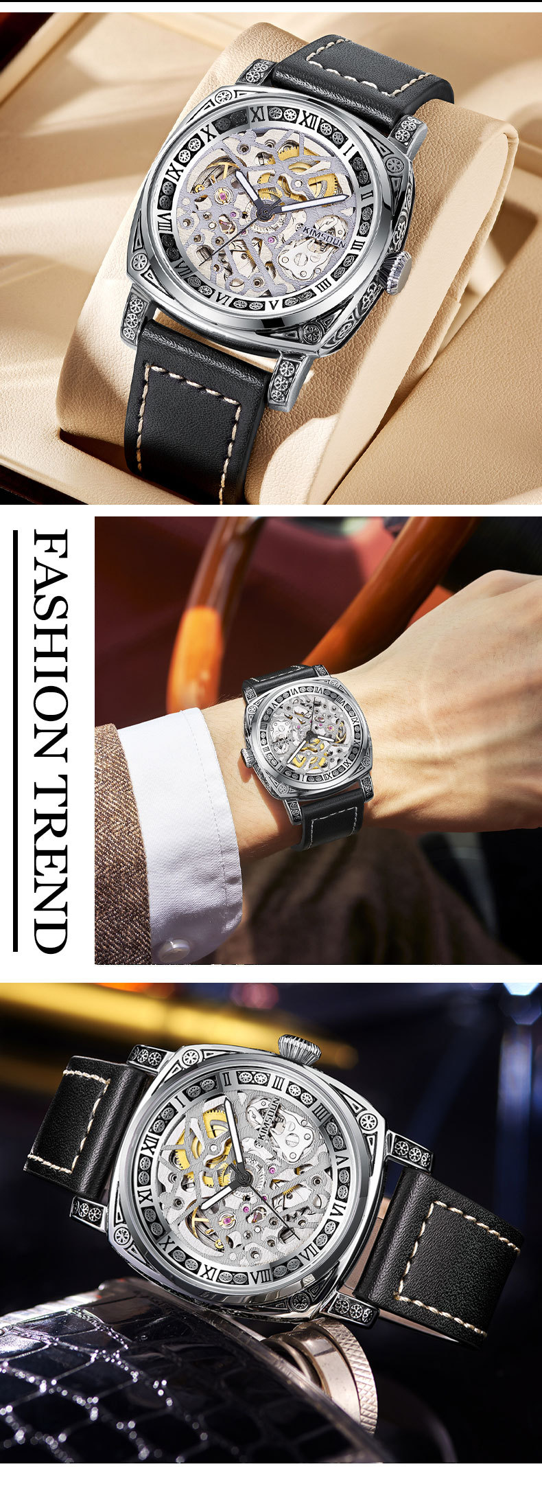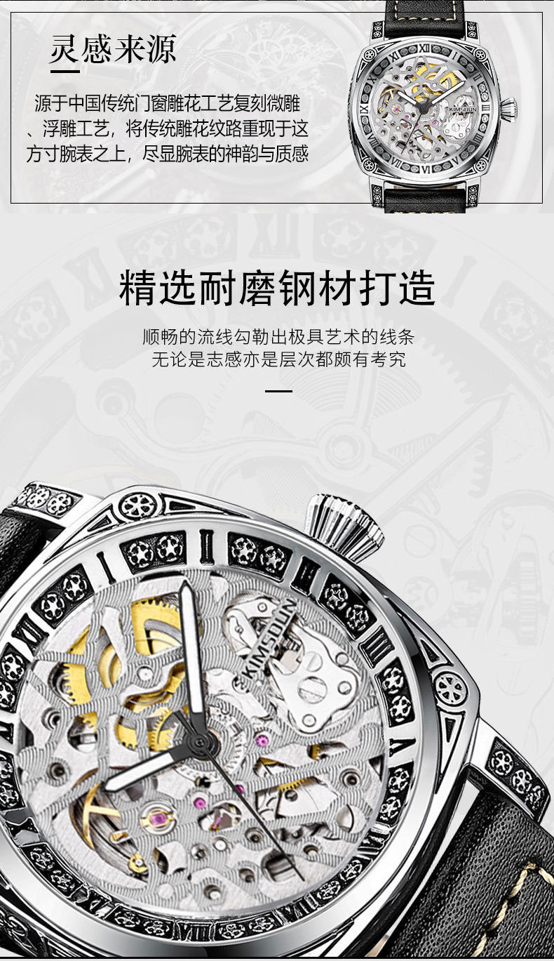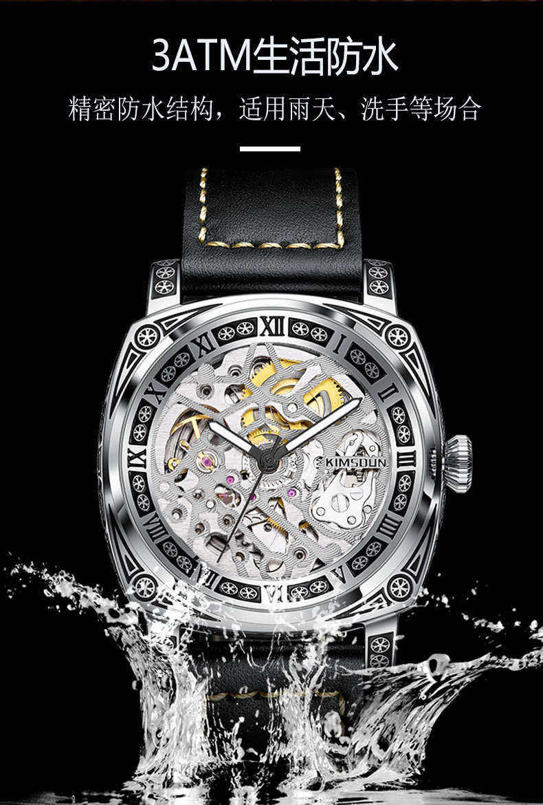 Color: Silver Shell Black Belt Model: K-2193A Thickness: 12mm Special function: luminous Buckle style: pin buckle Dial diameter: 42mm Dial shape: round Waterproof: Yes Waterproof performance: 30M Buckle material: stainless steel Brand: KIMSDUN/ Kingston Item number: K-2193A Movement model: fully automatic Movement Type: Mechanical Strap material: genuine leather Applicable people: male Bottom type: see through Crown Type: Screw Crown Mirror material: Mineral tempered glass mirror Market Year/Season: Summer 2021 Display Type: Pointer style: fashion Movement origin: China Case Material: Metal