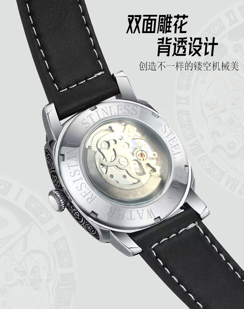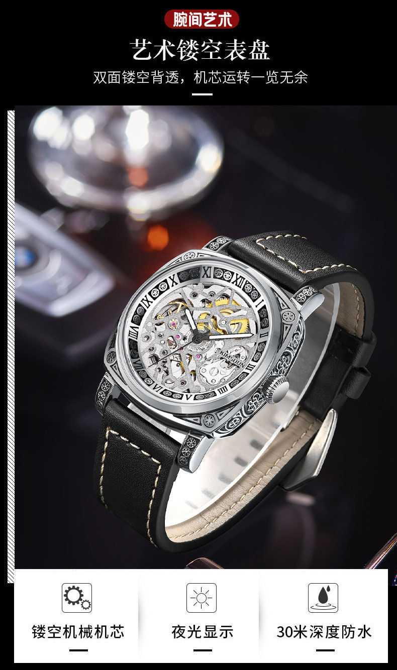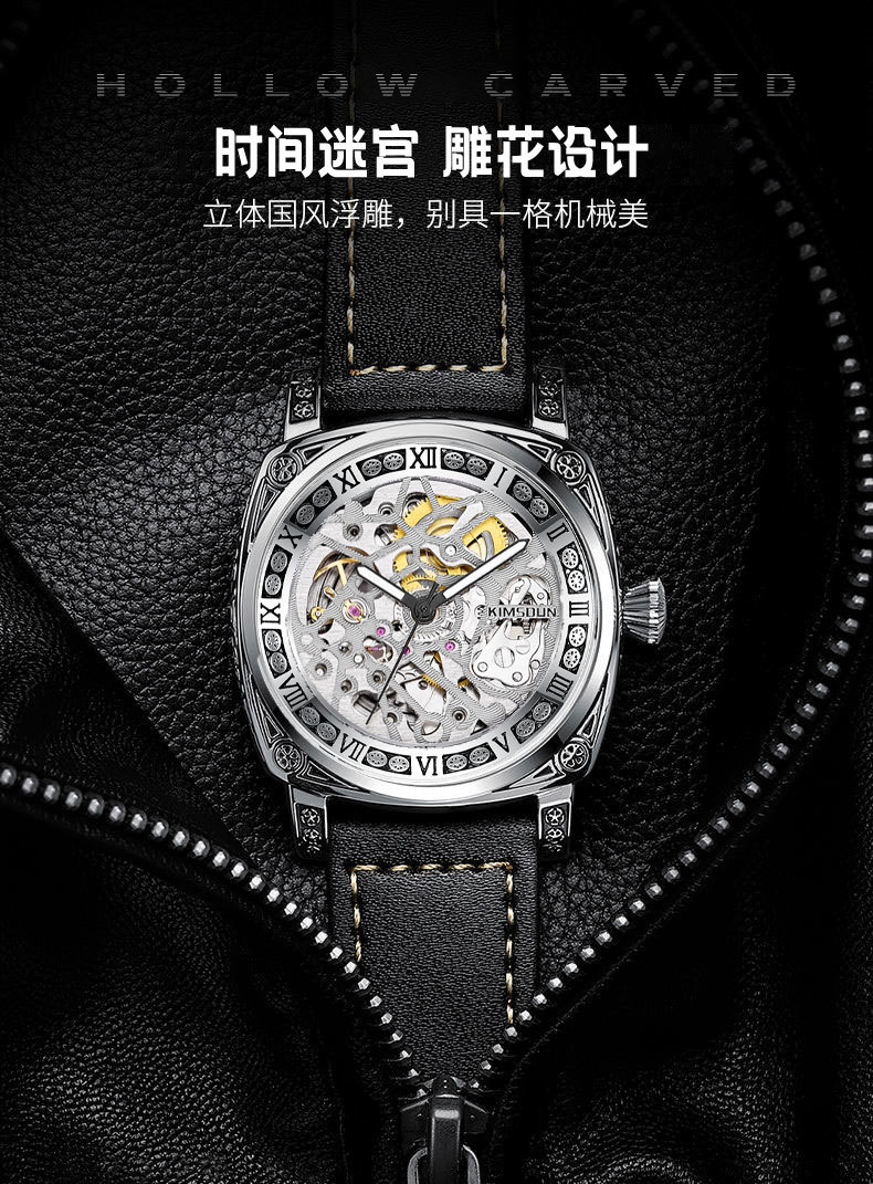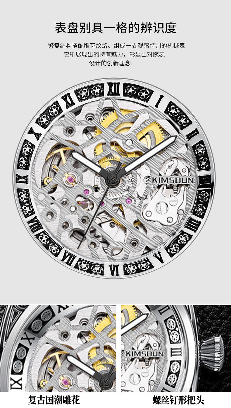 KIMSDUN men's watch double-sided hollow fully automatic mechanical trend antique carved waterproof men's casual watch K-2193A