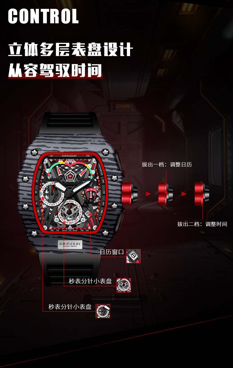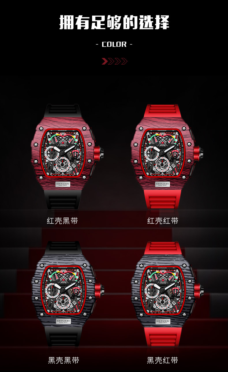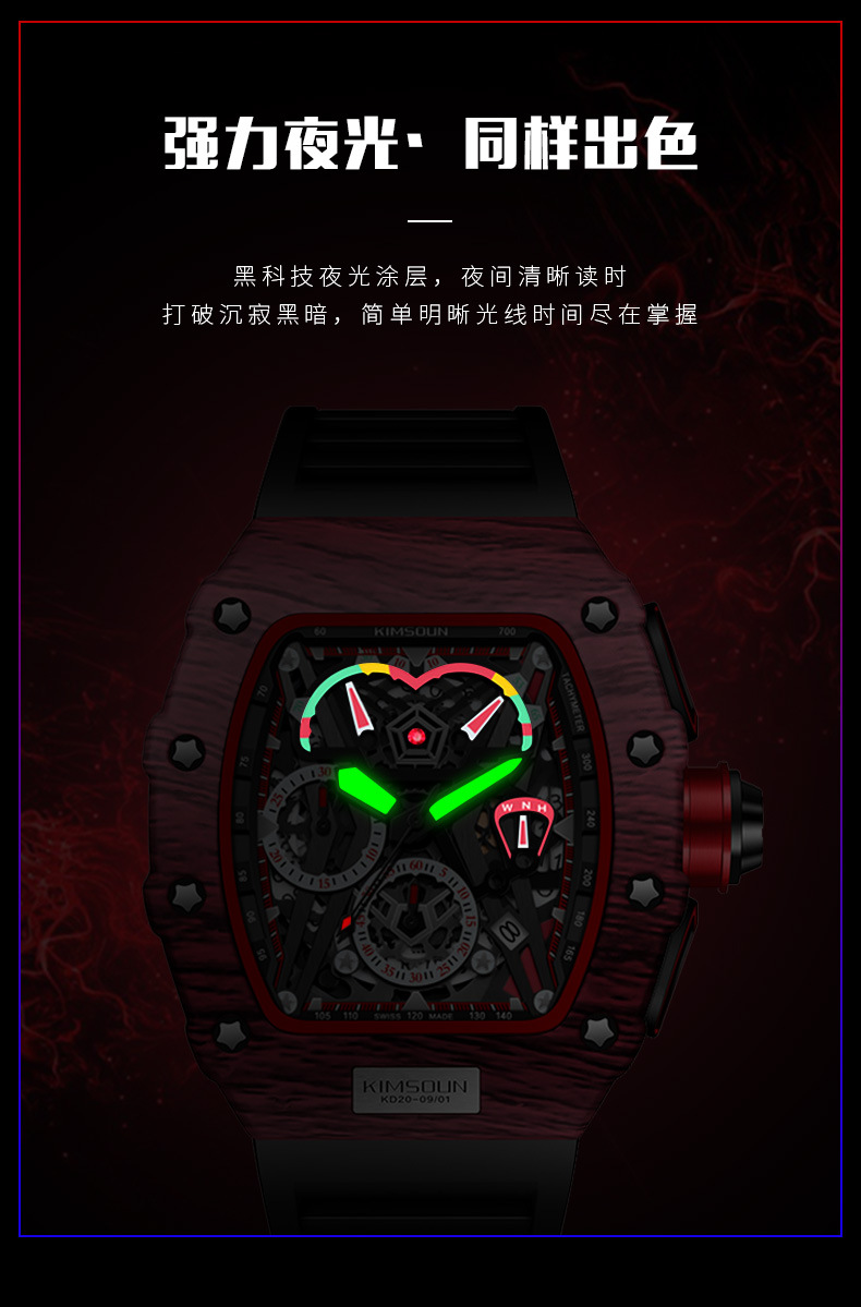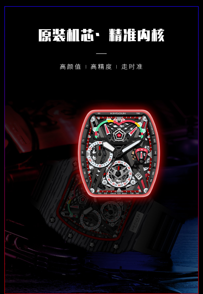 Color: black shell with red belt, black shell with black belt, red shell with red belt, red shell with black belt Model: K-2013B Thickness: 18mm Special functions: luminous, calendar, countdown, small three needles, 24-hour indication Buckle style: pin buckle Dial diameter: 44mm Dial shape: barrel shape Waterproof: Yes Waterproof performance: 30M Buckle material: stainless steel Brand: KIMSDUN/ Kingston Item No.: K-2013B Movement model: original movement Movement type: Quartz Strap Material: Silicone Applicable people: male Bottom Type: Ordinary Crown Type: Screw Crown Mirror material: Mineral tempered glass mirror Market Year/Season: Summer 2021 Display type: pointer + number style: fashion Movement origin: domestic Case Material: Alloy