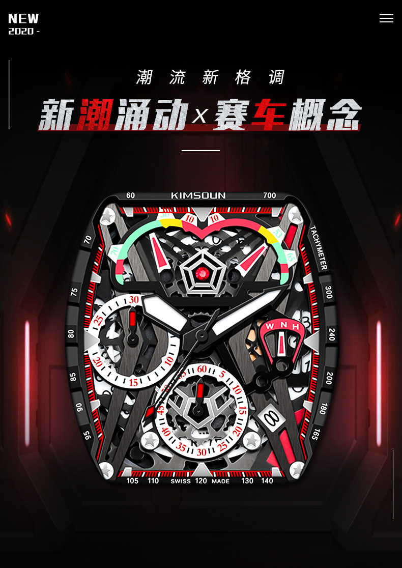 KIMSDUN Multifunctional Bucket Type Fashion Sports Watch Men's Miller Calendar Quartz men's casual Watch K-2013B
