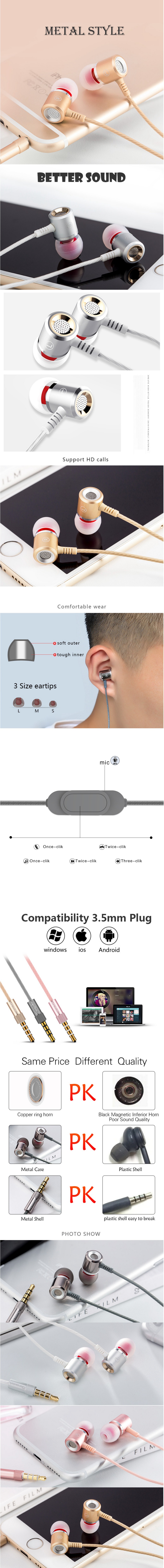 Langsdom M400 3.5mm Metal Earphone For Phone Super Bass In-ear Earphones With Mic Stereo Headset Earbuds For Samsung Silver