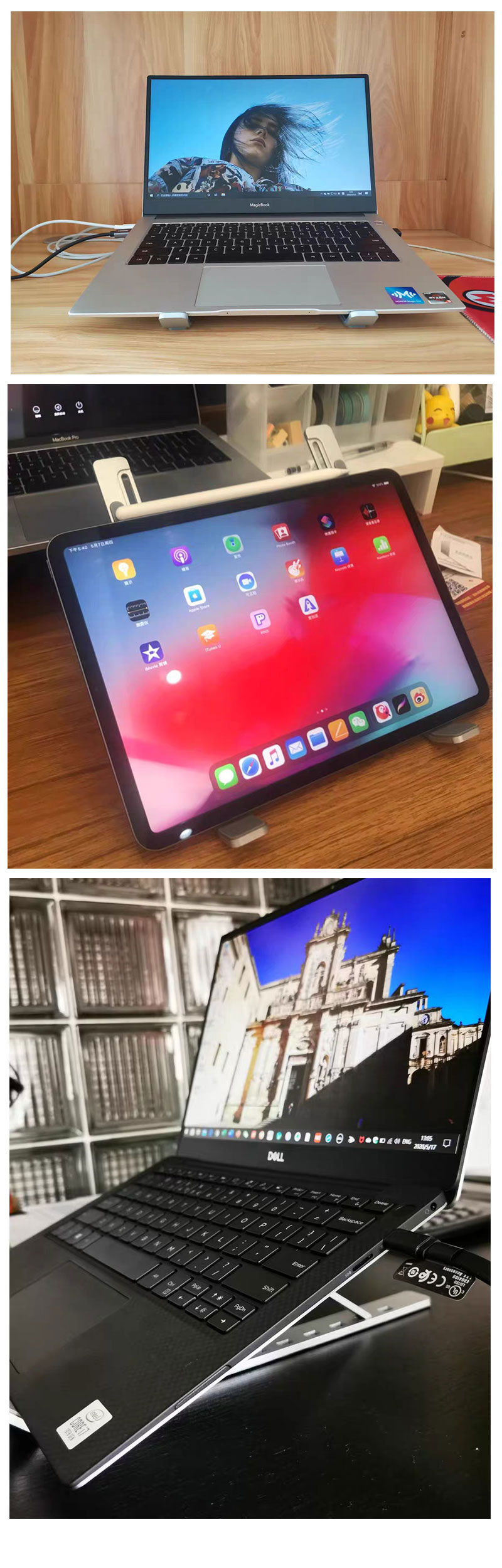 Pendirian laptop & tablet menyokong kebanyakan peranti dari 10 - 15.6 inci: Macbook, ThinkPad, Surface, Chromebook, iPad Pro, dll.