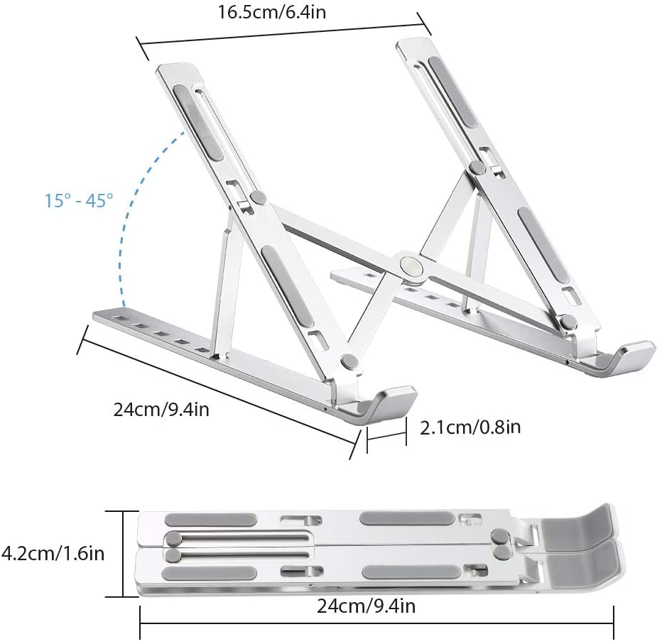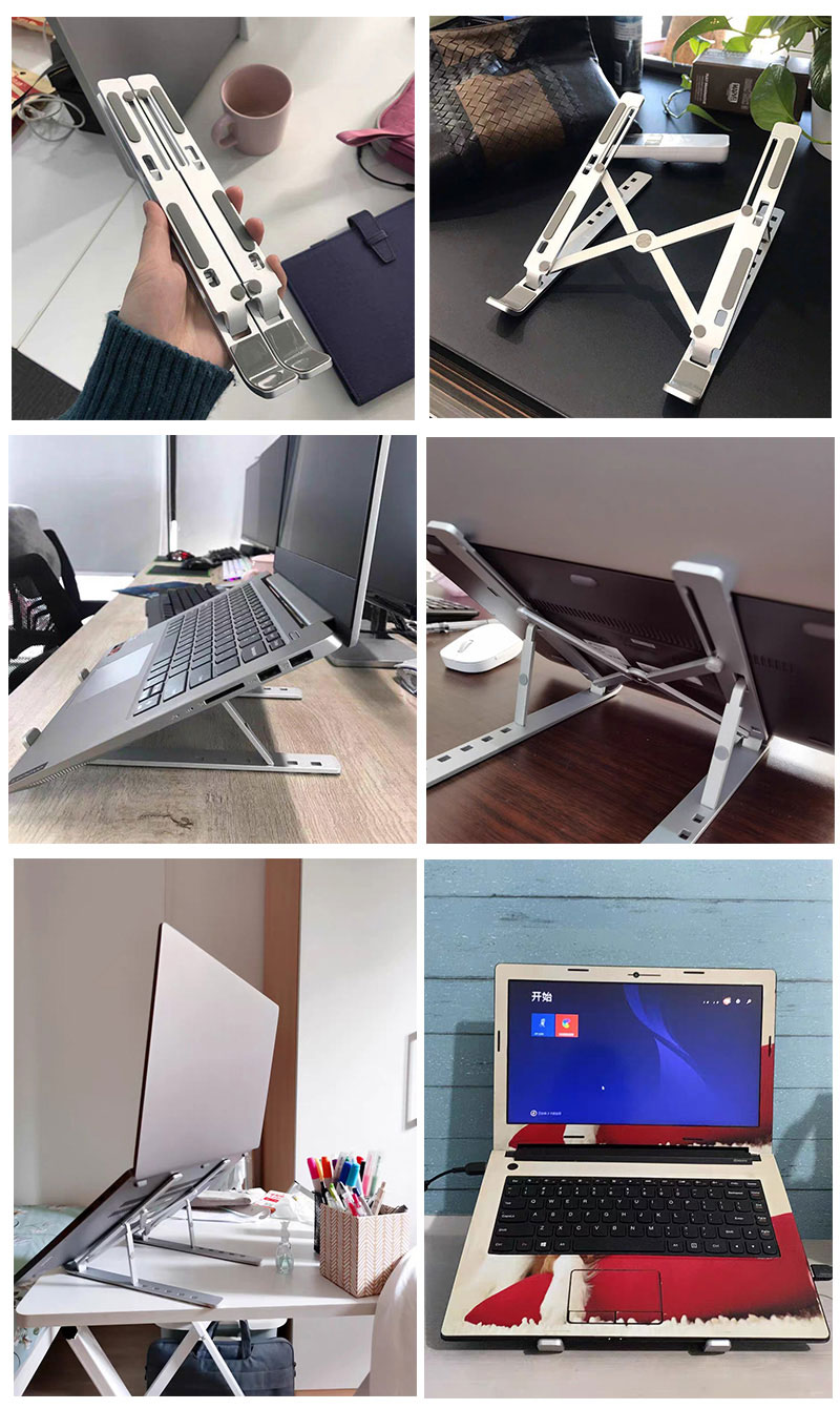 Haba DissipationThe digantung reka bentuk dan bahan aluminium membolehkan dirian laptop untuk menghilang haba yang lebih baik. Jangan bimbang tentang haba komputer riba anda apabila anda bekerja atau belajar.