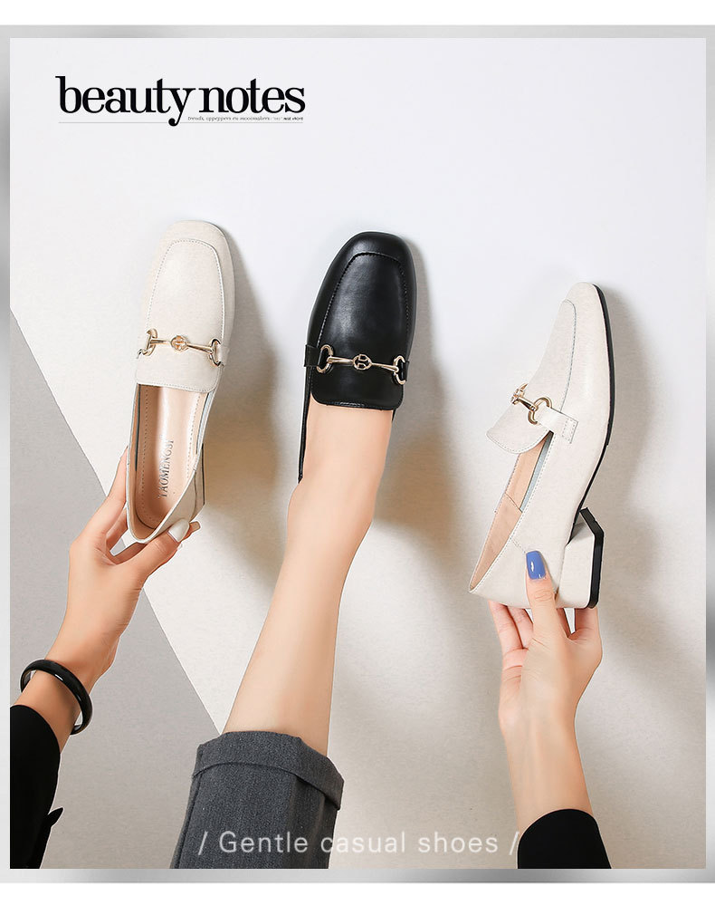 Leather shoes women's England 2022 new buckle high heels casual single shoes thick heels versatile large women's shoes 189-1