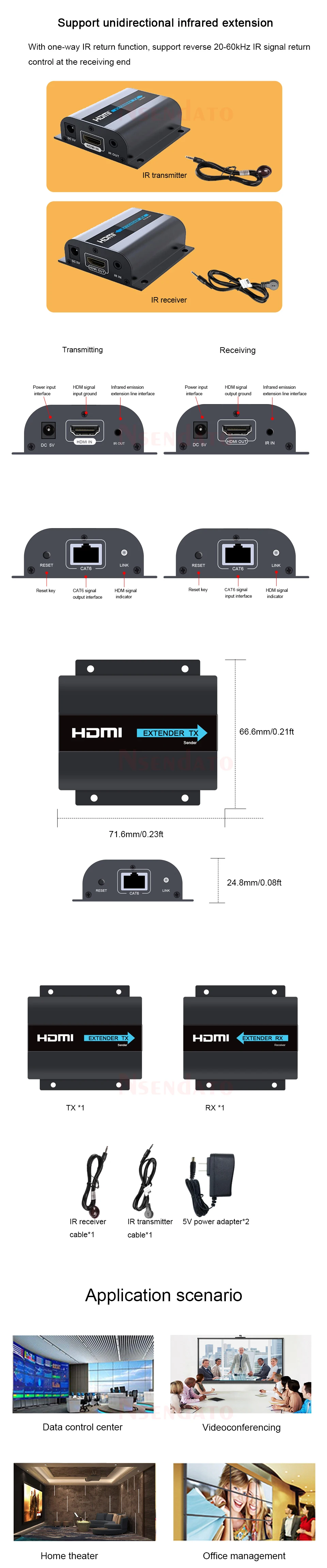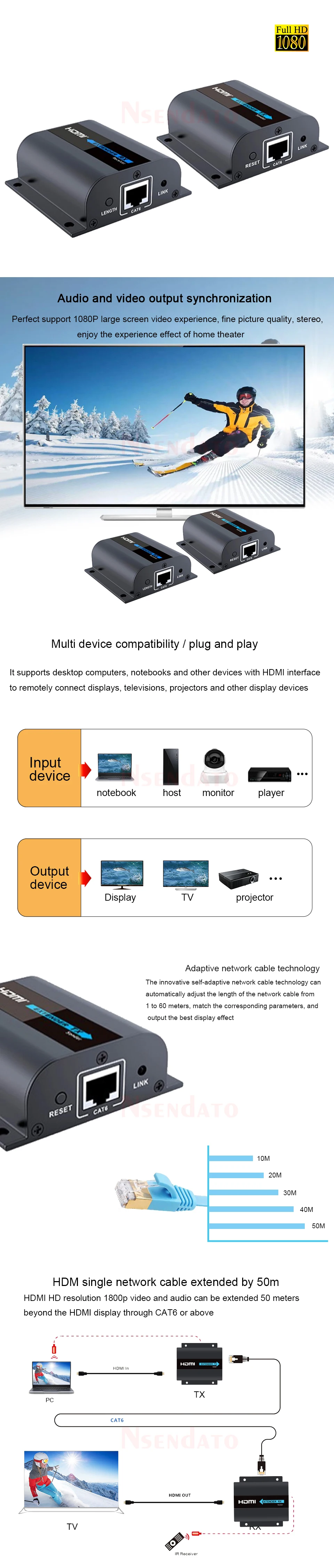 LKV372A 50M HDMI Network Extender Sender Transmitter & Receiver Over RJ45 Cat6/Cat7 Single Transmission For DVD PS3 Projector