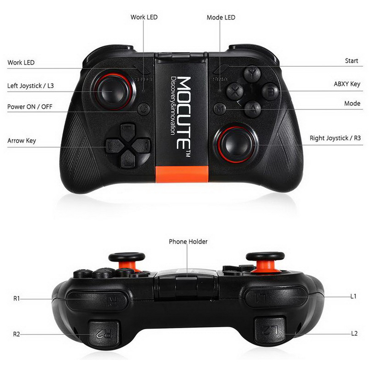 Product Description 3: MOCUTE-050 Package: Yes Interface Type: Bluetooth Compatible Brand/Model: None Wireless Bluetooth Controller Game Controller for Android Can be used when connected to a Bluetooth mobile phone and...