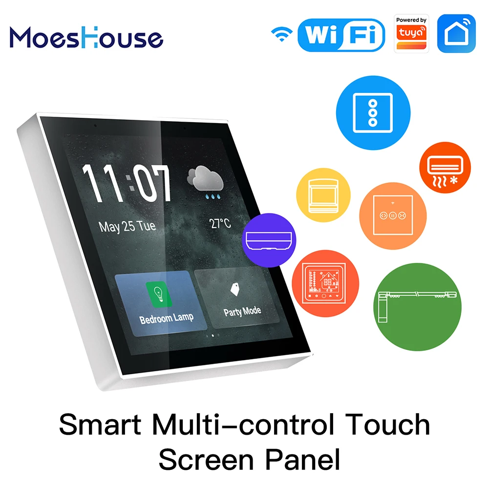 MoesHouse Tuya Smart Home Multi-functional Touch Screen Control Panel 4-inch in-wall Central Control for Intelligent Scenes
