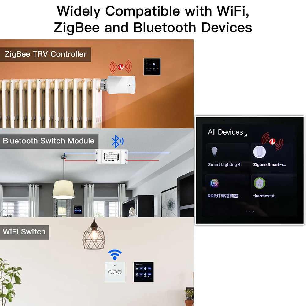 4.A good substitute for another Tuya ZigBee gateway at home,and directly use the control panel as a gateway for adding Tuya ZigBee devices in App for intelligent controls,up to 100+ ZigBee sub devices available for being added.