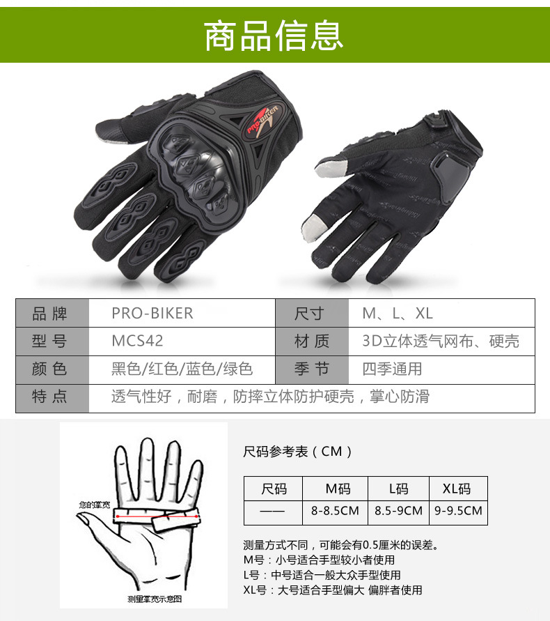 Motorcycle Breathable Four Seasons Racing Riding Motorcycle Knight Cold Protection Drop-Resistant Non-Slip Touch Screen Men's and Women's Gloves MCS-42