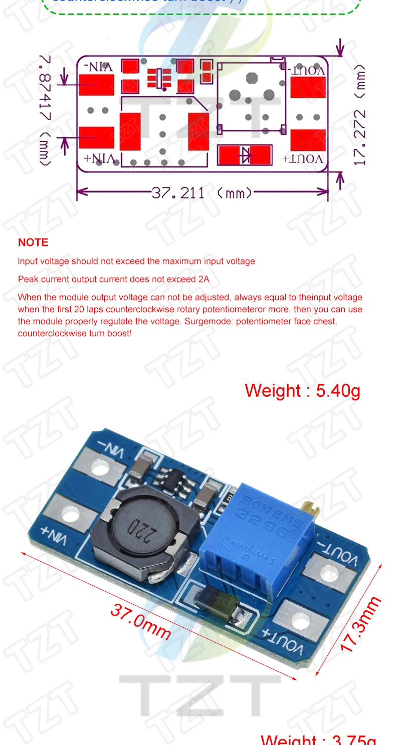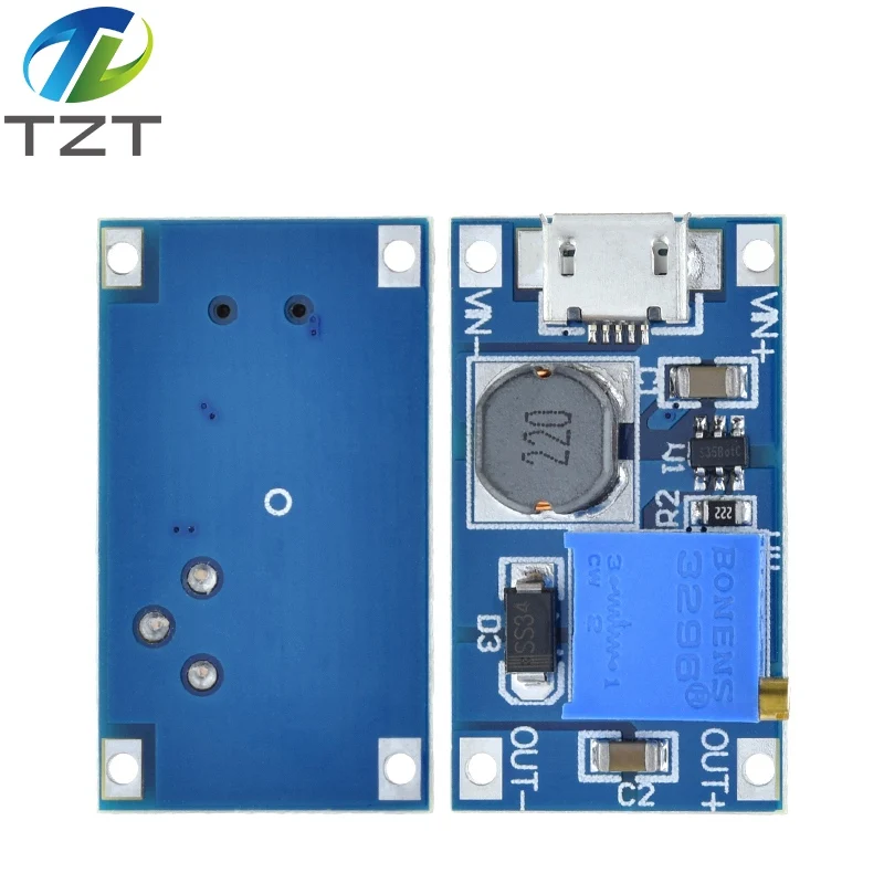 MT3608 DC-DC Adjustable Boost Module 2A Boost Plate Step Up Module with MICRO USB 2V-24V to 5V 9V 12V 28V