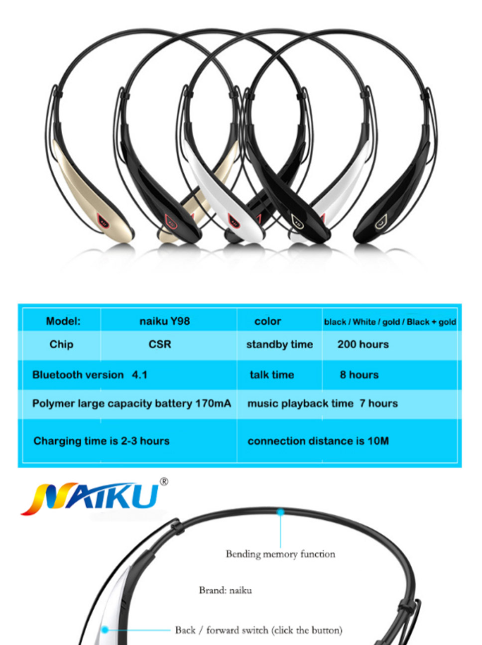 Product Description Model Number: Y98 Function: For Mobile Phone,Common Headphone Wireless Type: Bluetooth With Microphone: Yes Is wireless: Yes Support APP: No Support Memory Card: No Support Apt-x: No Waterproof:...