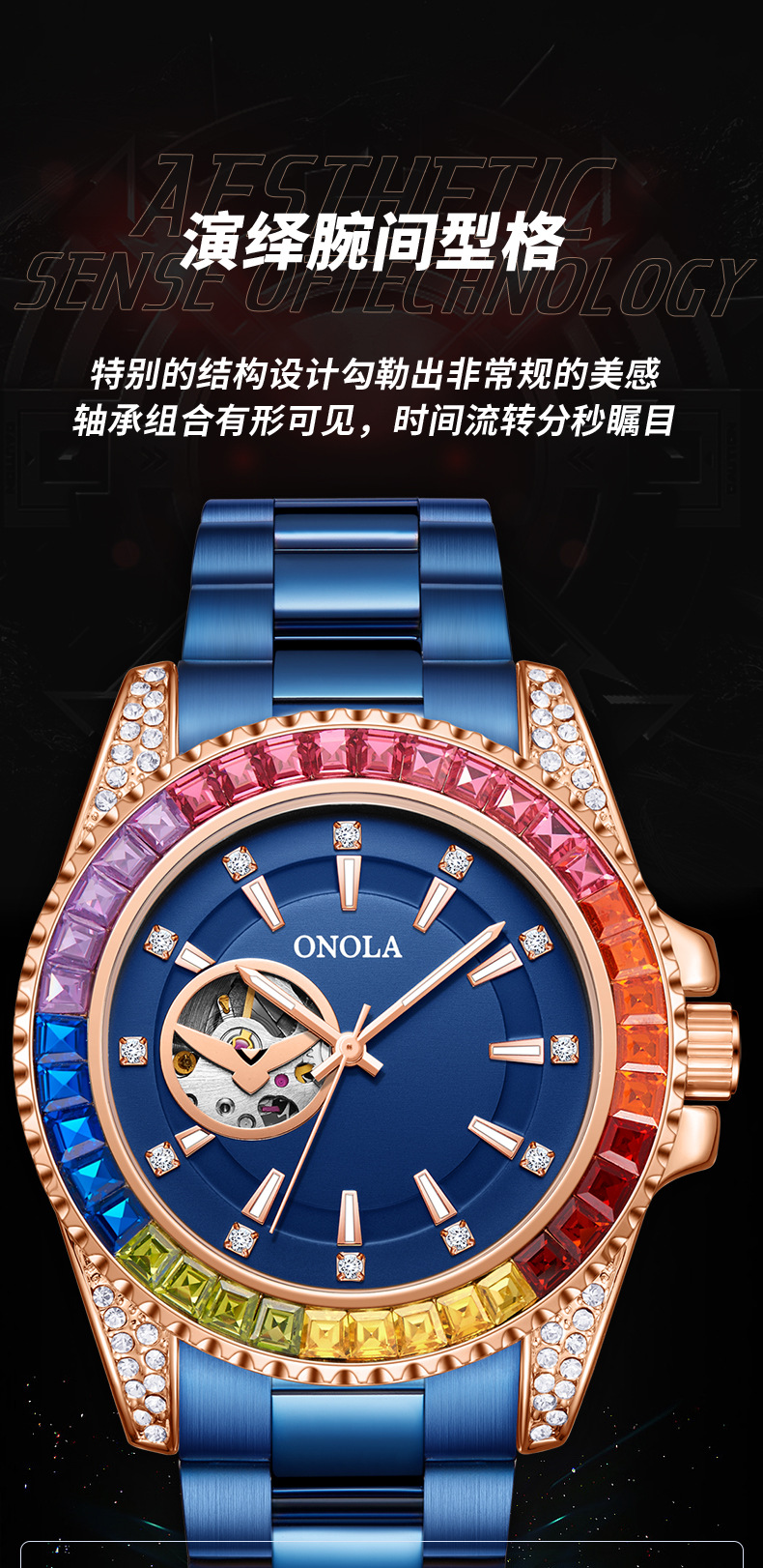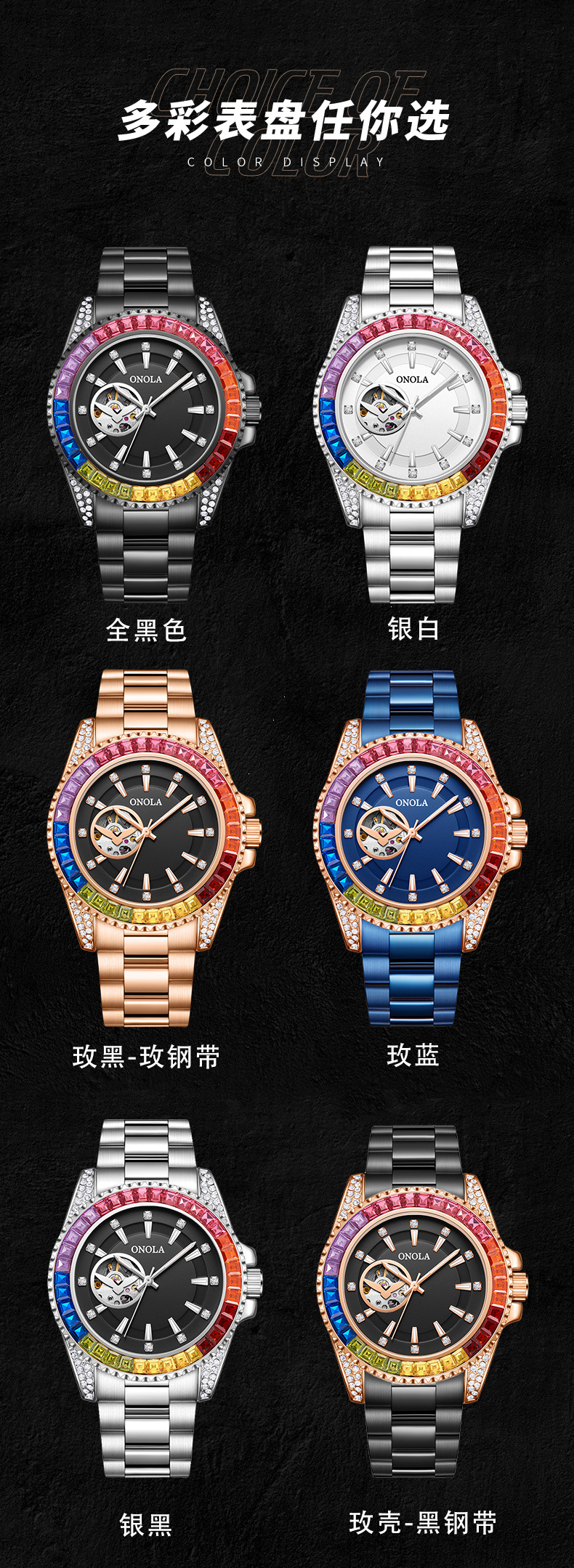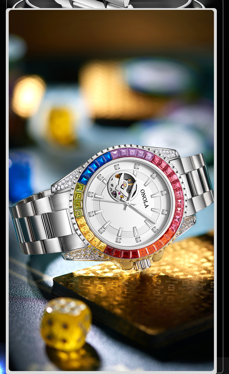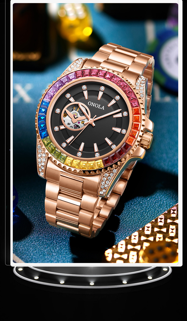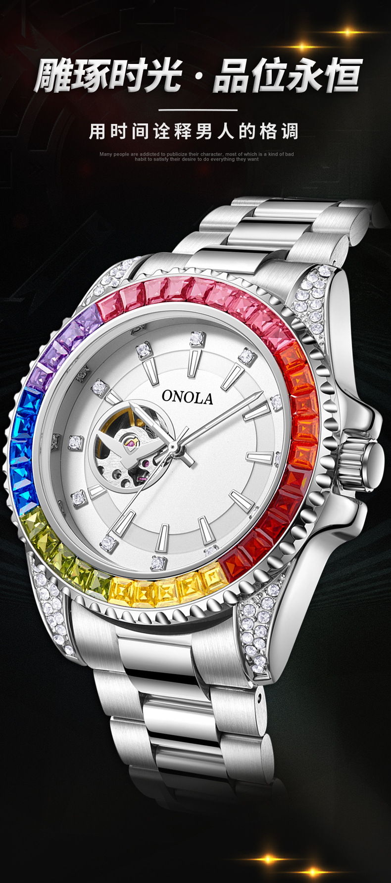 ONOLA ON3839 Men's Watch fashion new colorful diamond automatical mechanical watch steel waterproof men casual watch