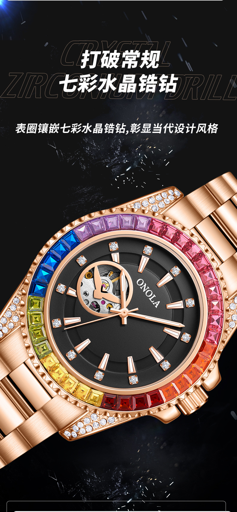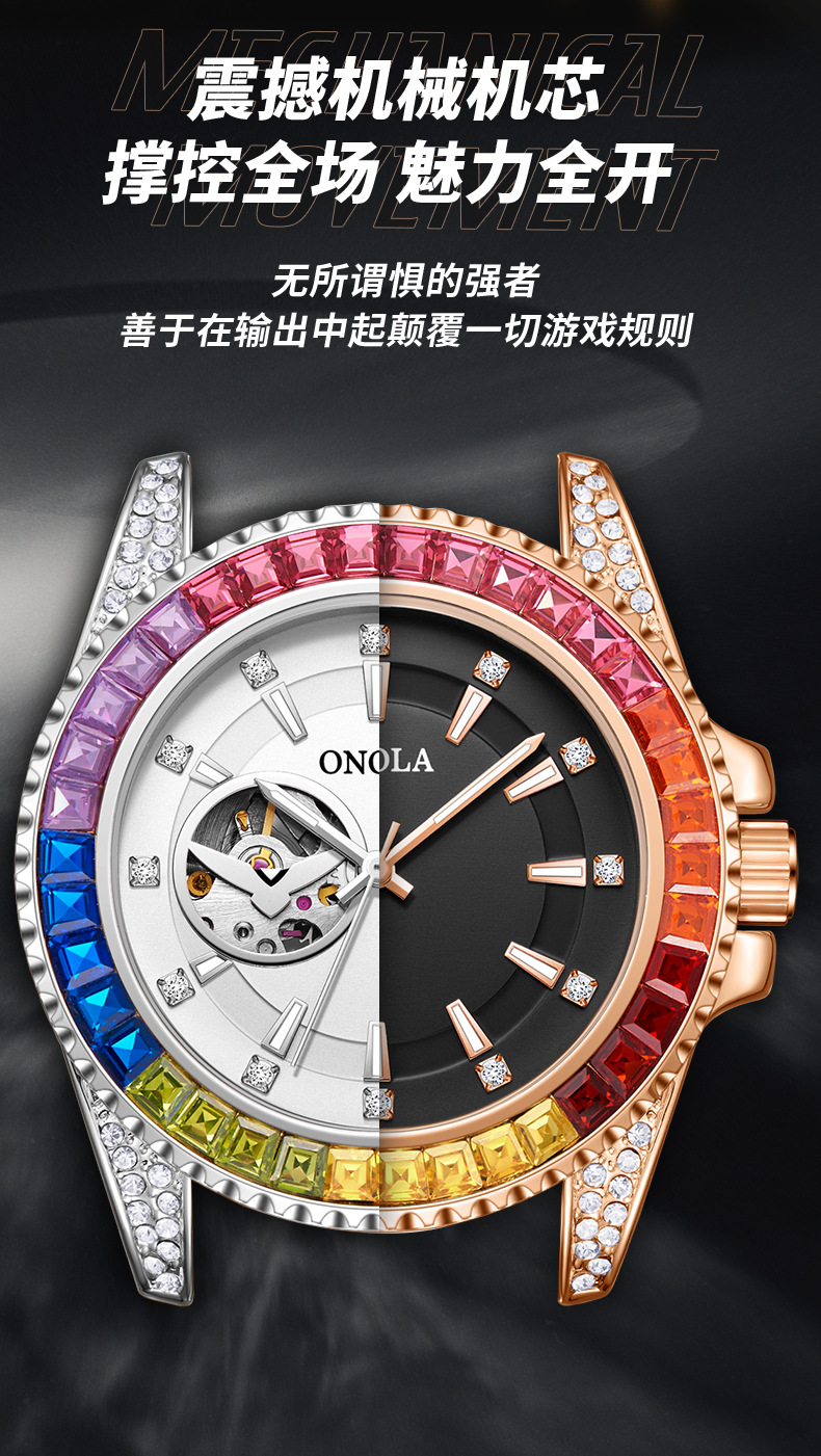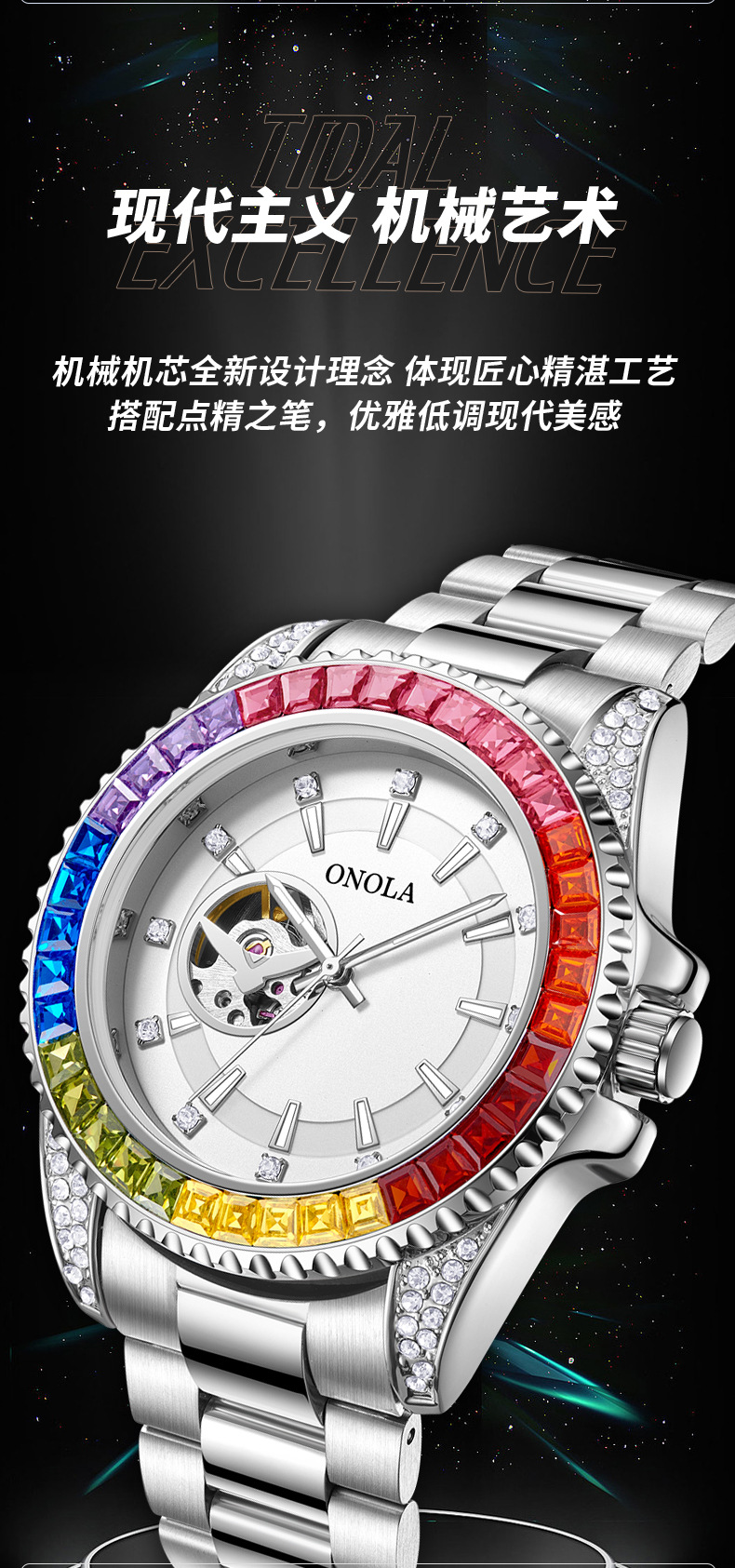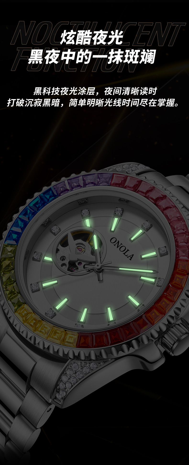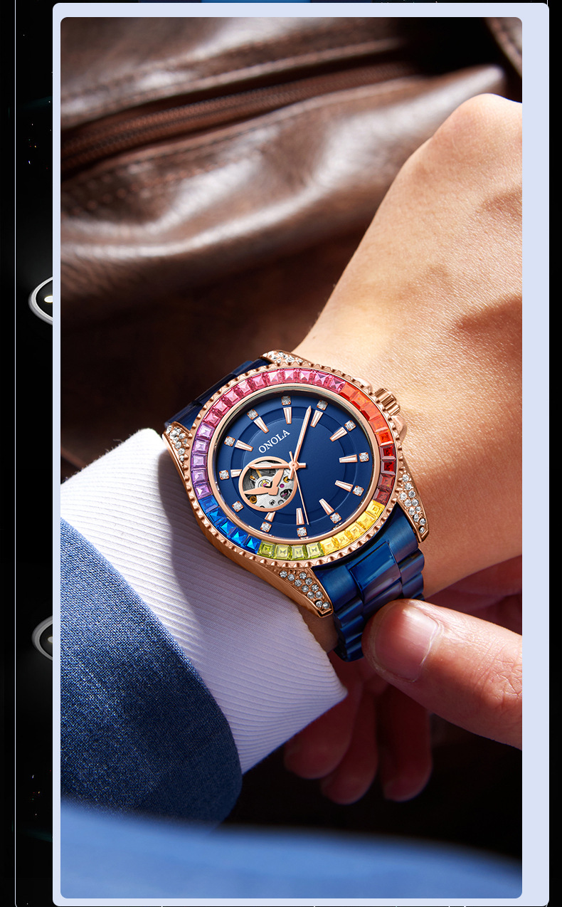 ONOLA ON3839 Men's Watch fashion new colorful diamond automatical mechanical watch steel waterproof men casual watch