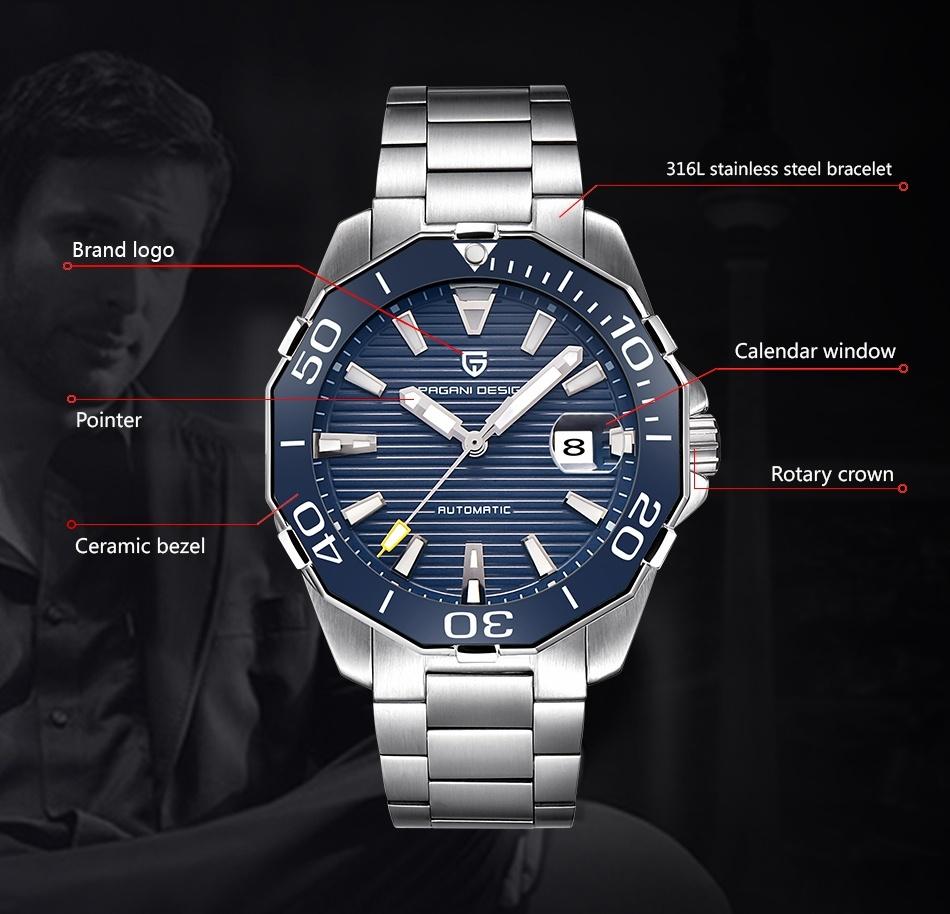 PAGANI DESIGN PD-1617Men's Classic Diving Series Mechanical Watches Waterproof Steel Stainless Brand Luxury Watch Men Relogio Masculino