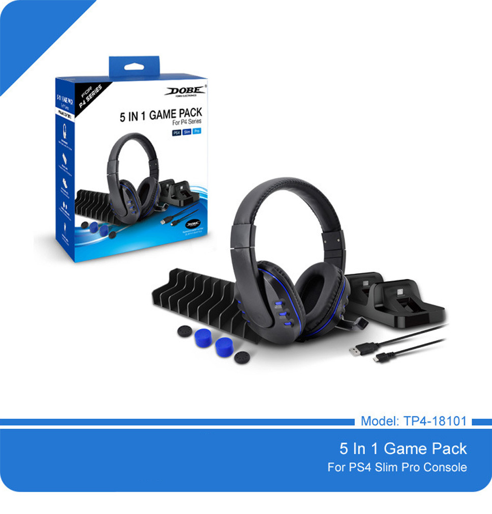 1: 5-in-1 kit for PS4 game consoles, comes with headphone, charger, button cap, game rack