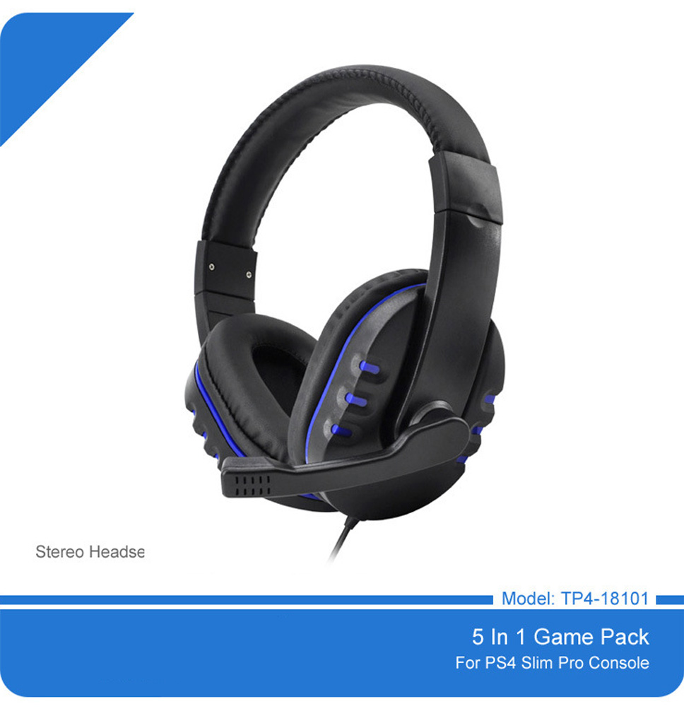 Portable 5-in-1 Game Pack Accessories Kit, Gaming Headset Headphone With Microphone For PS4 / SLIM / PRO Black